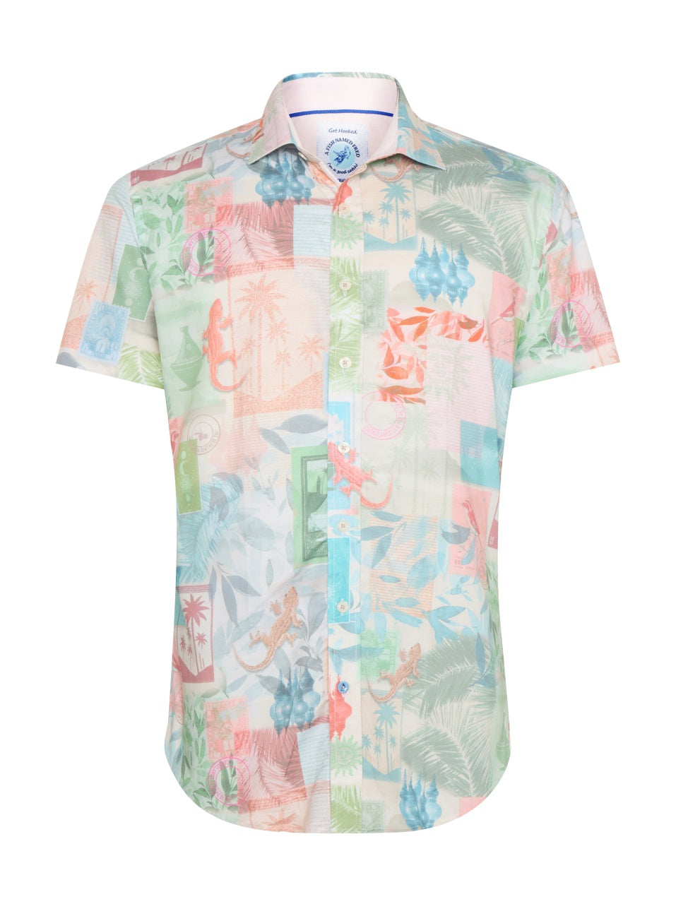 Discover elevated fashion with A Fish Named Fred's college print short sleeve shirt.