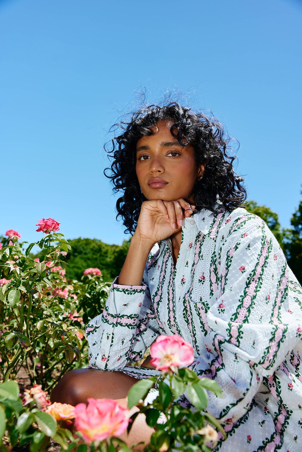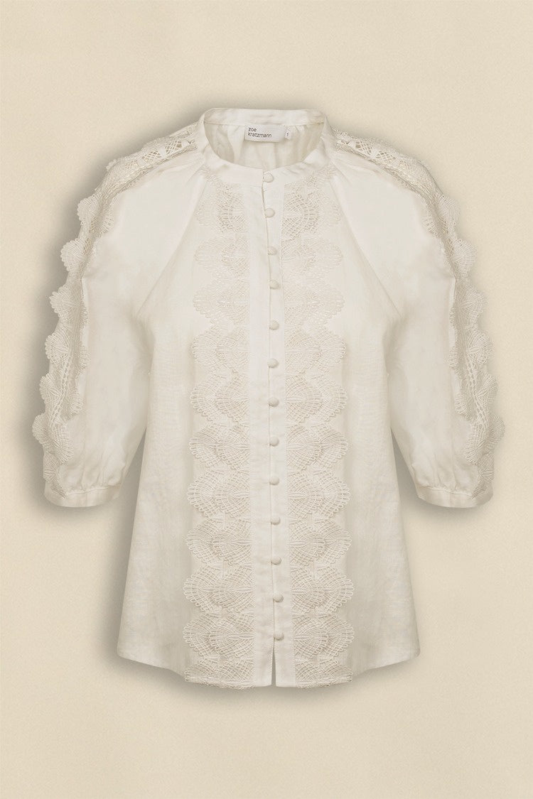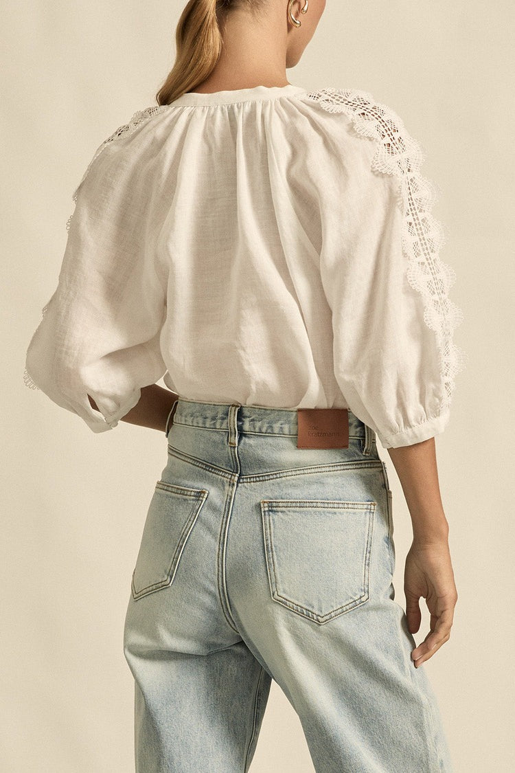 Broderie Anglaise Cap Sleeve Tee - Ecru