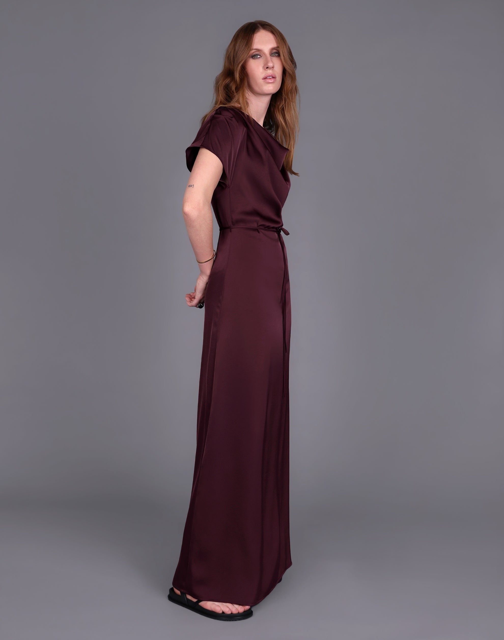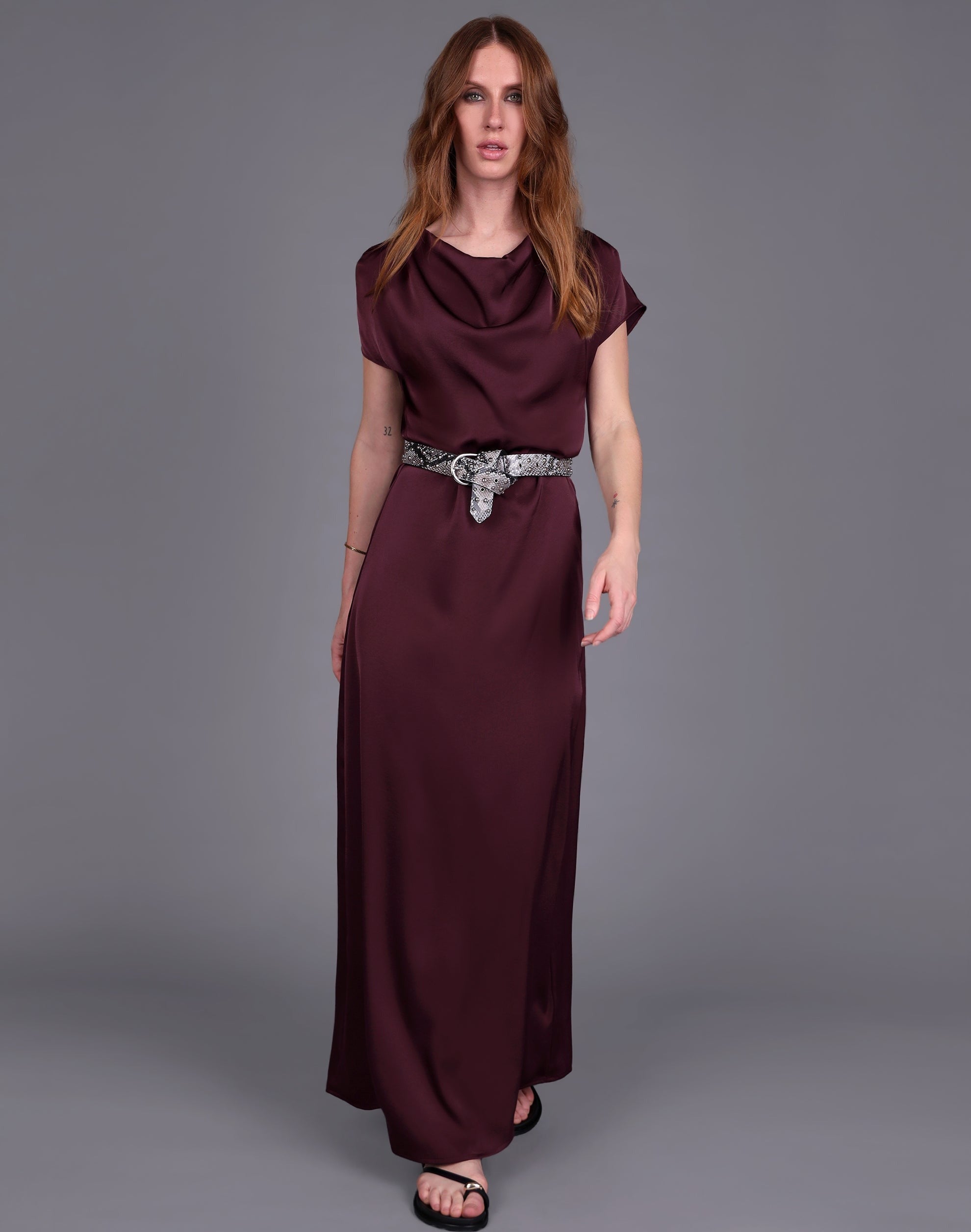 Delightful Satin Bias Slip Maxi Dress - Cherry Polka Dot