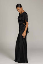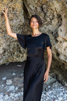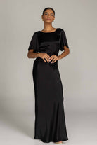 An effortless combination of romanticism and refined style, our Golden Hour Dress is the epitome of elegance in a rich dark olive hue. The high neckline and short flutter sleeves add a touch of sophistication, while the flowing midi length hem and open back with an adjustable bow tie create an ethereal silhouette. Crafted from luxurious rayon/viscose satin, this dress is perfect for those seeking a truly exclusive piece for their wardrobe. Elevate your look and embody the essence of luxury with our Golden Hour Dress.