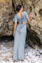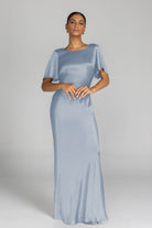An effortless combination of romanticism and refined style, our Golden Hour Dress is the epitome of elegance in a ice blue hue. The high neckline and short flutter sleeves add a touch of sophistication, while the flowing midi length hem and open back with an adjustable bow tie create an ethereal silhouette. Crafted from luxurious rayon/viscose satin, this dress is perfect for those seeking a truly exclusive piece for their wardrobe. Elevate your look and embody the essence of luxury with our Golden Hour Dress.