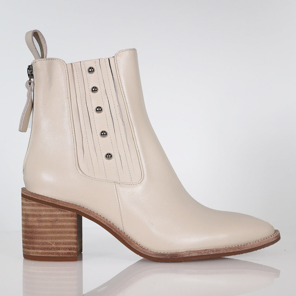 Lonestar blends sleek sophistication with Western-inspired details for the ultimate stylish winter boot. Crafted from premium leather, this ankle boot features a squared point toe and a wood-stacked heel, offering both an elevated and timeless look. The leather fluted gusset with stud detailing ensures a flawless fit, while the back zip allows for easy on and off. Lonestar pairs effortlessly with everything from dresses to tailored denim, making it the perfect statement boot to elevate your winter wardrobe.