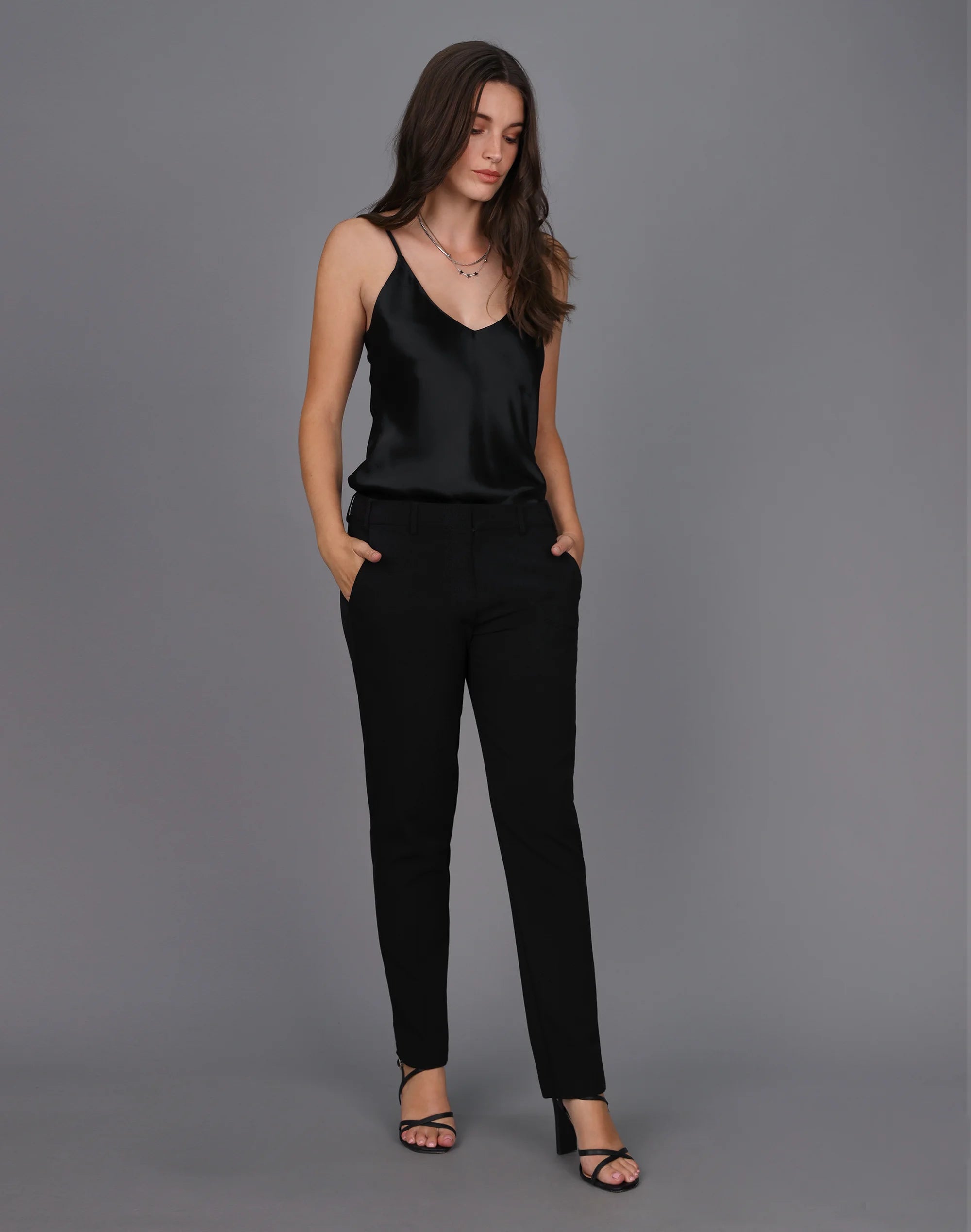 In a classic slim leg design featuring side pockets and belt loops, they are a simple but classy option for everyday wear, and transitioning from night to day.