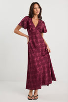 Tram Bias Flared Maxi Dress - Burgundy Jacquard