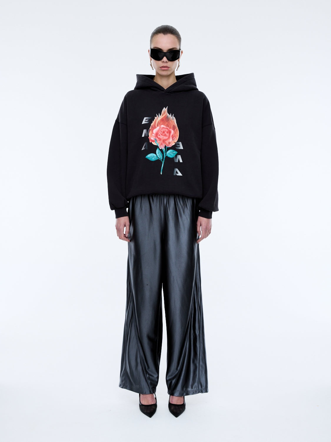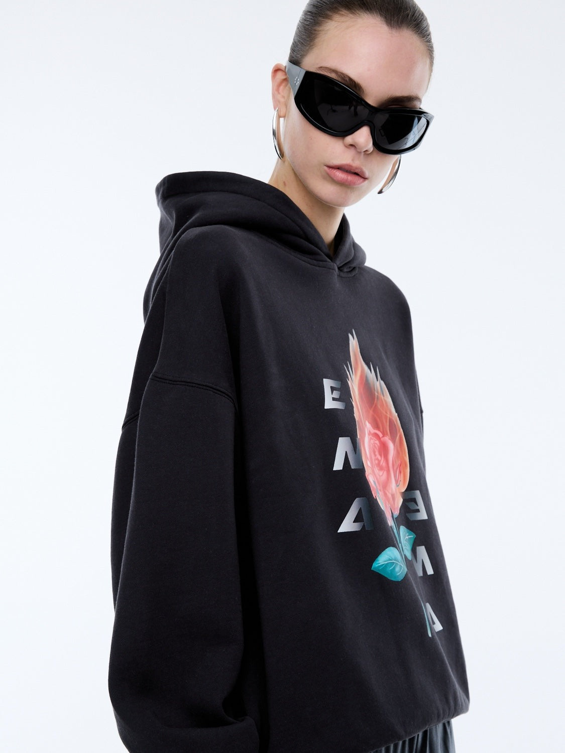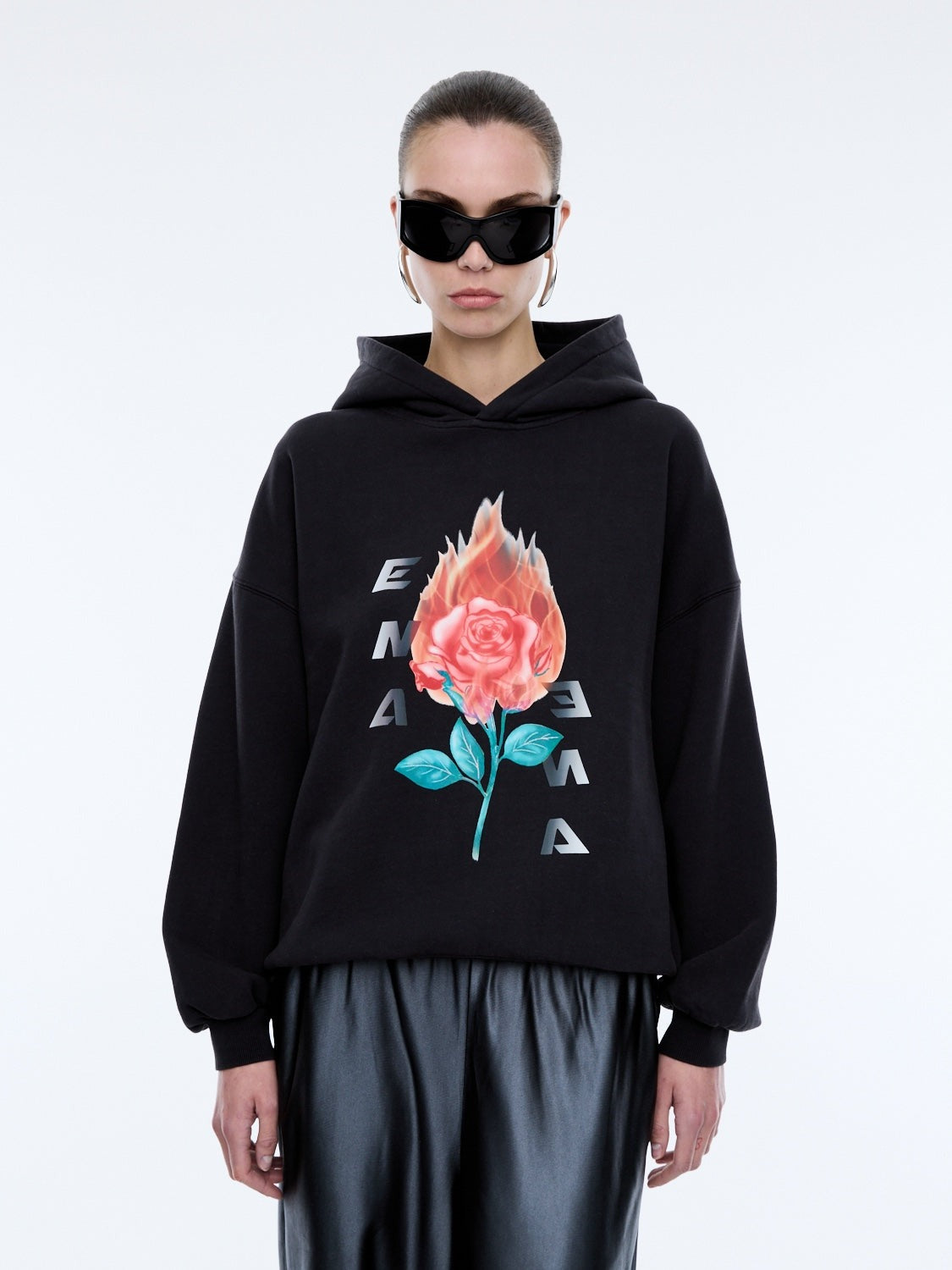 The Flaming Rose Hoodie is crafted from super soft cotton fleece for ultimate comfort, featuring an oversized silhouette with a relaxed drop shoulder design. The bright and bold Ena Pelly exclusive print complete this effortless, statement piece