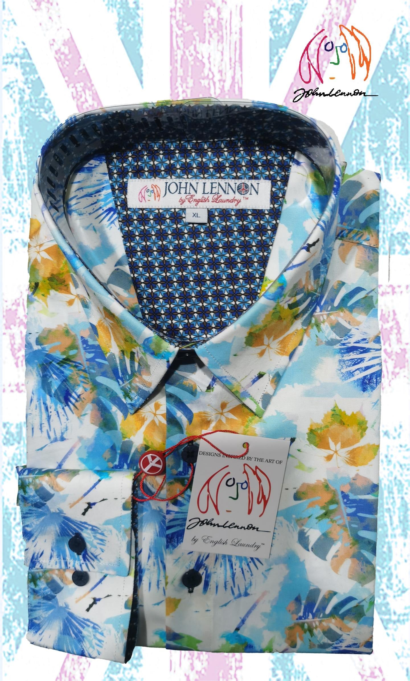 John Lennon L/S Shirt - White w/Blue Palm Print