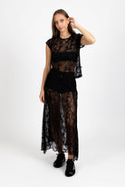 The Iris Skirt features delicate lace that adds an elegant touch to your wardrobe. Designed with refinement in mind, its intricate lace detailing offers a sophisticated look perfect for special occasions or elevating everyday style. Experience grace and subtle charm with this beautifully crafted skirt.