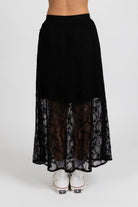 Elevate your wardrobe with the Lace It Skirt, featuring a delicate black lace overlay adorned with an exquisite floral print. This sophisticated piece effortlessly blends elegance and grace, perfect for both formal occasions and refined everyday wear. The flowing silhouette enhances your natural movement, creating a timeless and flattering look.