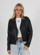 Federation's staple Leather Jacket - butter-soft pure leather in a tried and tested cut that fits in all the right places. A statement with sleek black hardware scattered all over. You'll love it year after year, all seasons round.