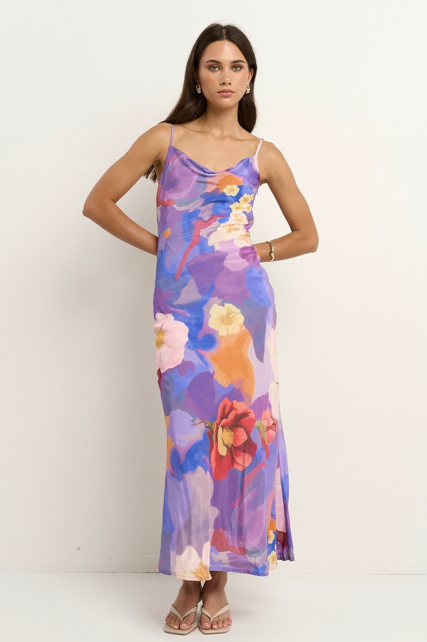 Lavish Tie Back Bias Slip Dress - Violet Floral