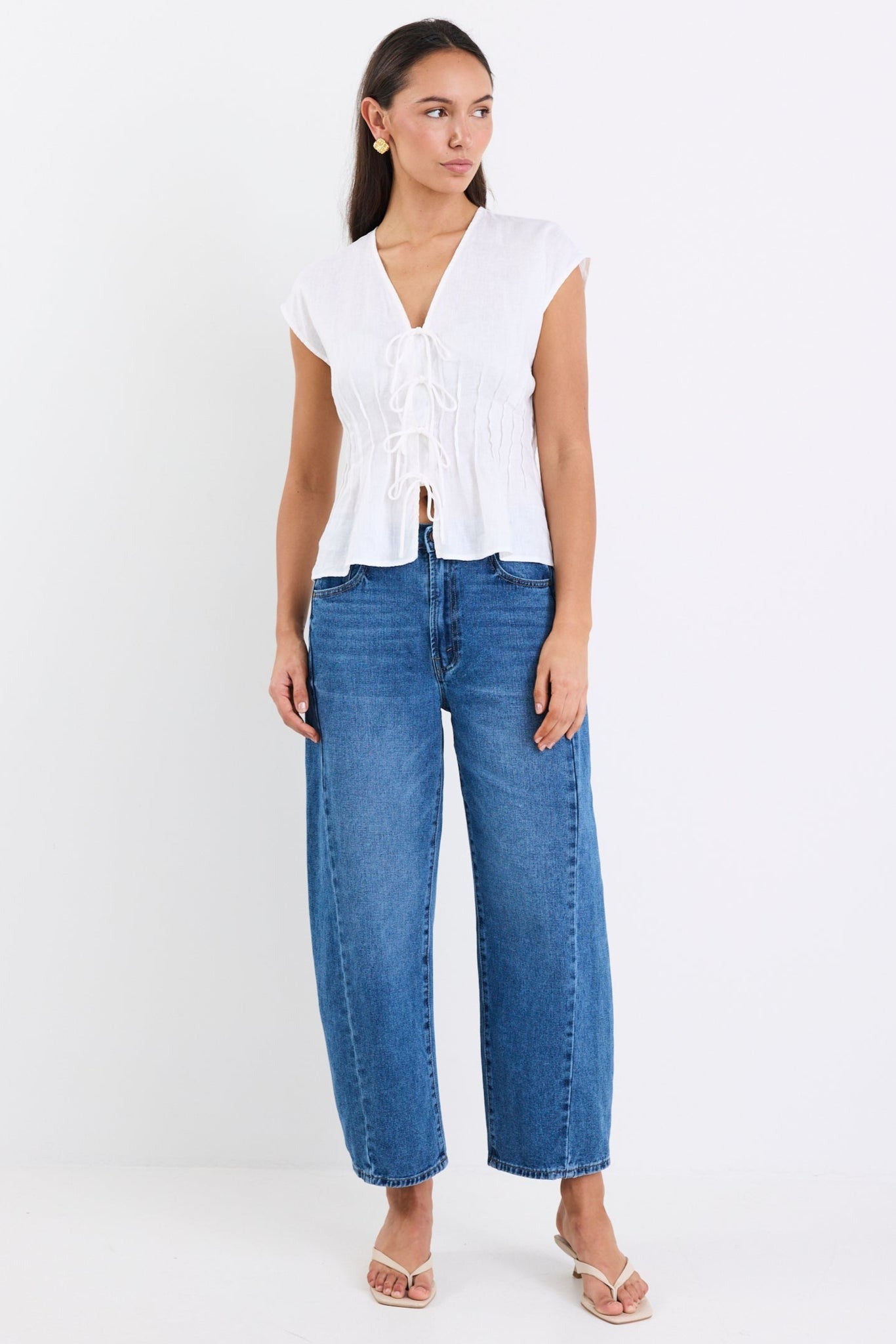 Nouveau Tie Front Vest - Ivory Linen