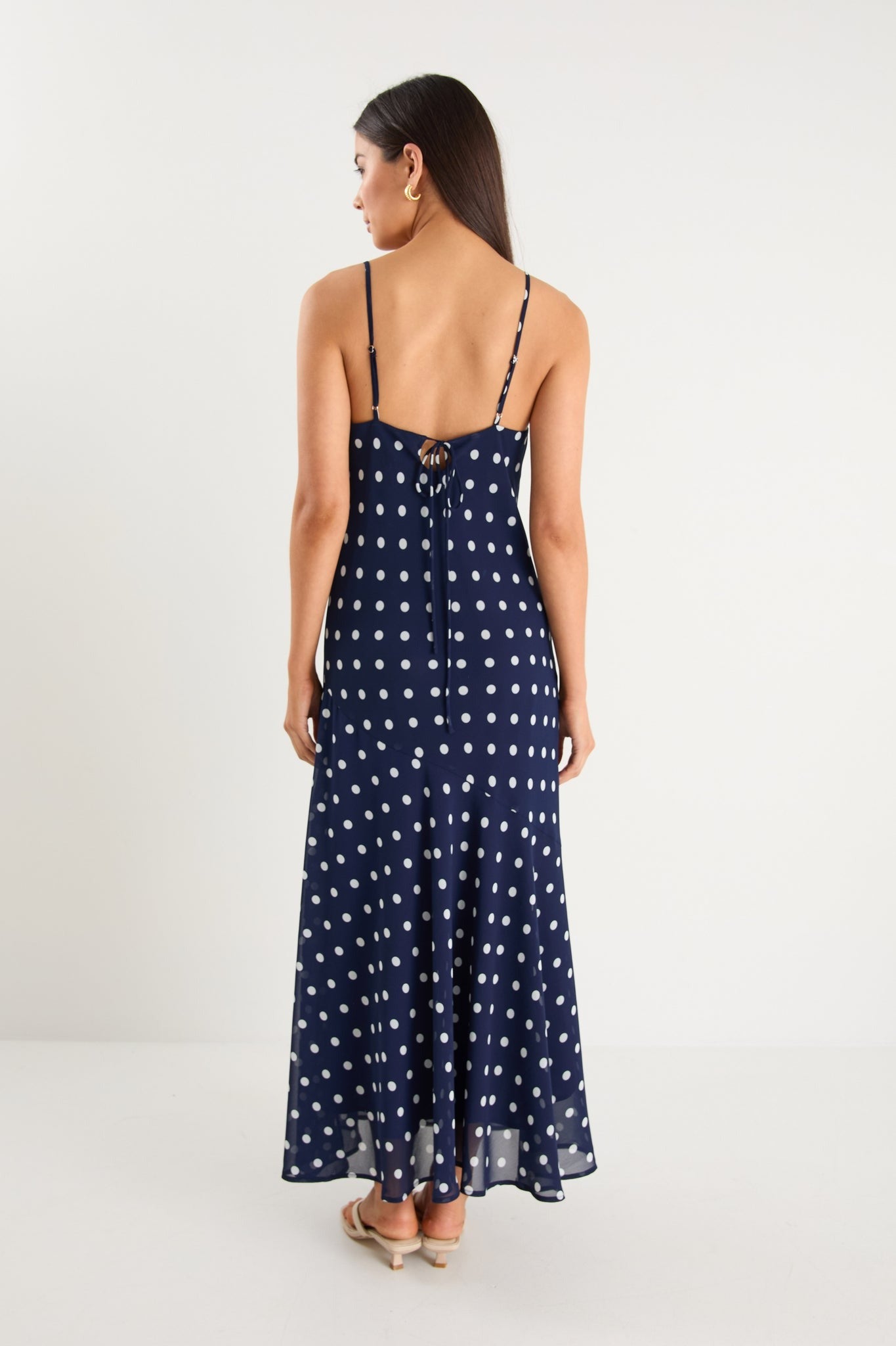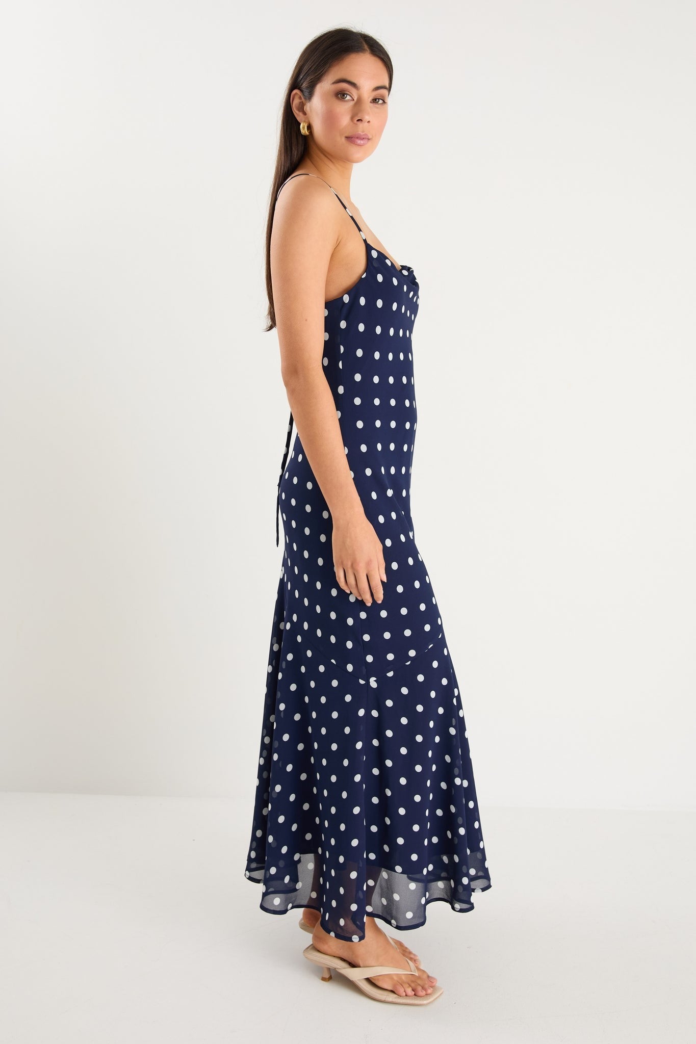 Reign Georgette Strappy Maxi Dress -Navy Polka Dot