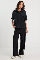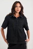 Crucial Short Sleeve Shacket - Black Denim