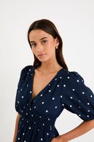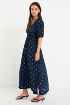 Eloquent Flutter Maxi Dress - Navy Polka Dot