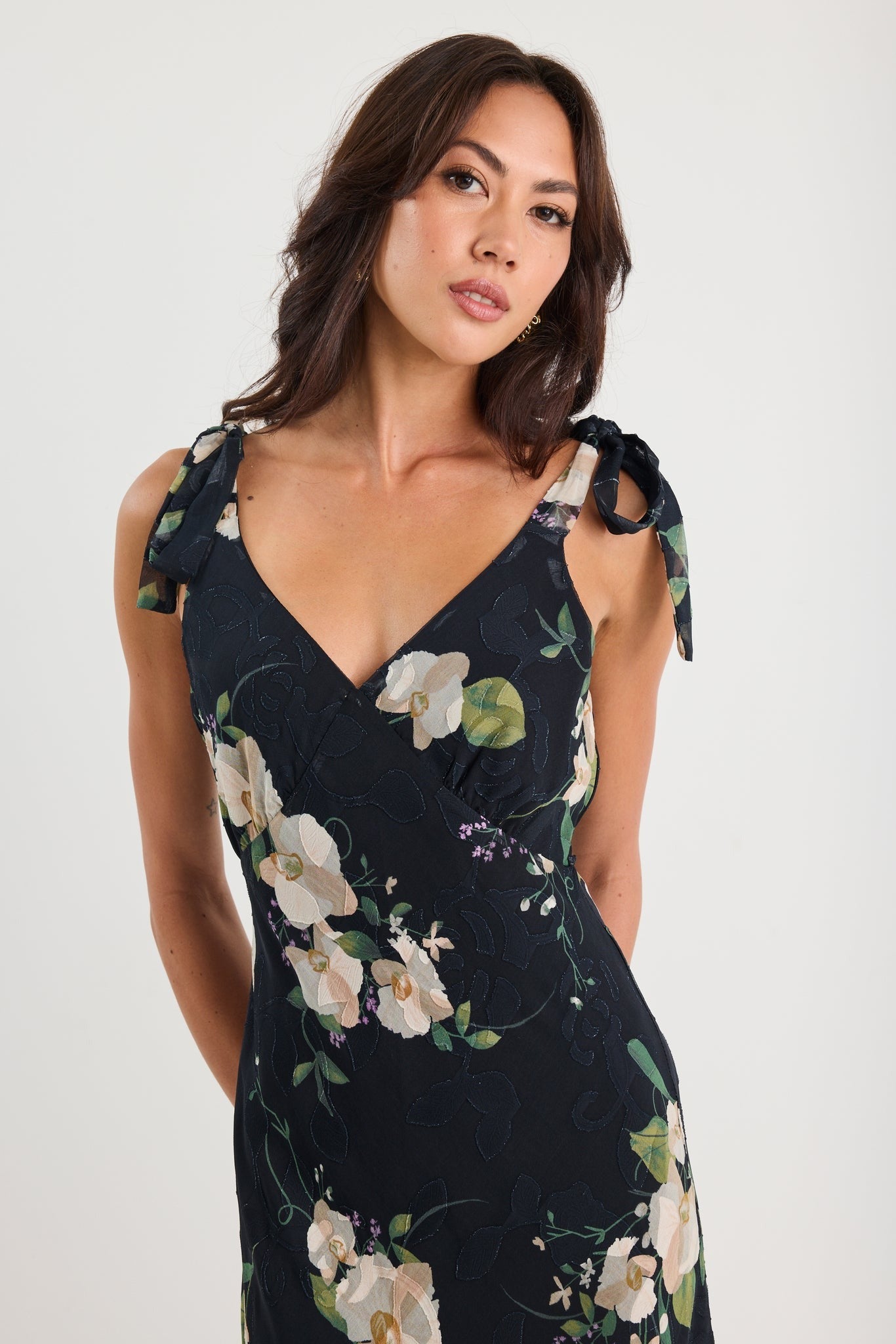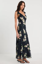 Serenade Slip Maxi Dress - Black / Blush Floral