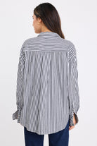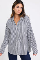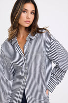 A fresh take on a classic, this striped button-up is all about effortless sophistication. The chocolate and white pinstripes add a modern edge, while the lightweight fabric keeps things breezy and comfortable. Worn loose over a tank or tucked into high-waisted trousers, this shirt is a must-have for laid-back yet polished dressing.