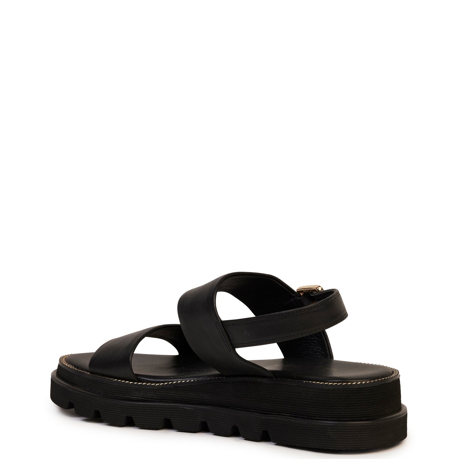 Elevated with double strapping and sat on a comfortable platform base, the Portia Sandal evokes an effortless day-time mood. Adorned with fine chain detailing around the base and finished with a statement gold buckle, it is the perfect piece for long lunching with the girls or hitting the beach.