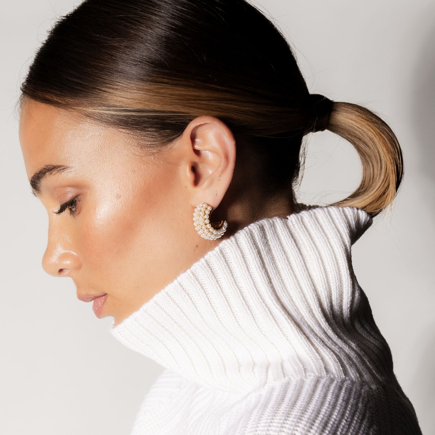 Hera Hoop Earrings - Pearl/Silver