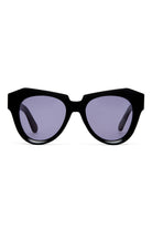 The latest update of a Karen Walker classic, the Apollo One is crafted in black bio-acetate with tonal smoke mono lenses. The bold cat-eye silhouette remains at the core, now refreshed with sculptural lines, a grey inlay, and signature gold-tone arrow hardware at the temple.