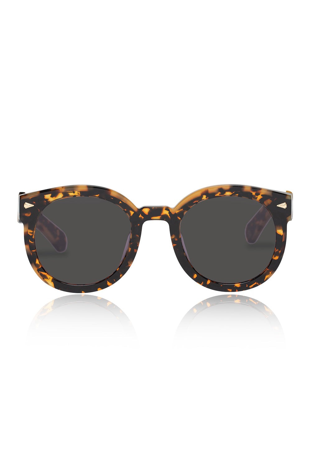 A KW cult favourite gets a playful psychedelic twist in the Super Wavy Duper, combining the exaggerated round shape of our Super Duper style and amplified with retro trippy arms. Crafted in a mix of two torts, the bold frame showcases our darkened Cracked Tort and signature Crazy Tort with accentuated temples that flow onto the wavy arms completed by our KW arrowhead pins. The sunglasses are fitted with dark smoke mono lenses for a classic, super chic look that will endure the test of time.