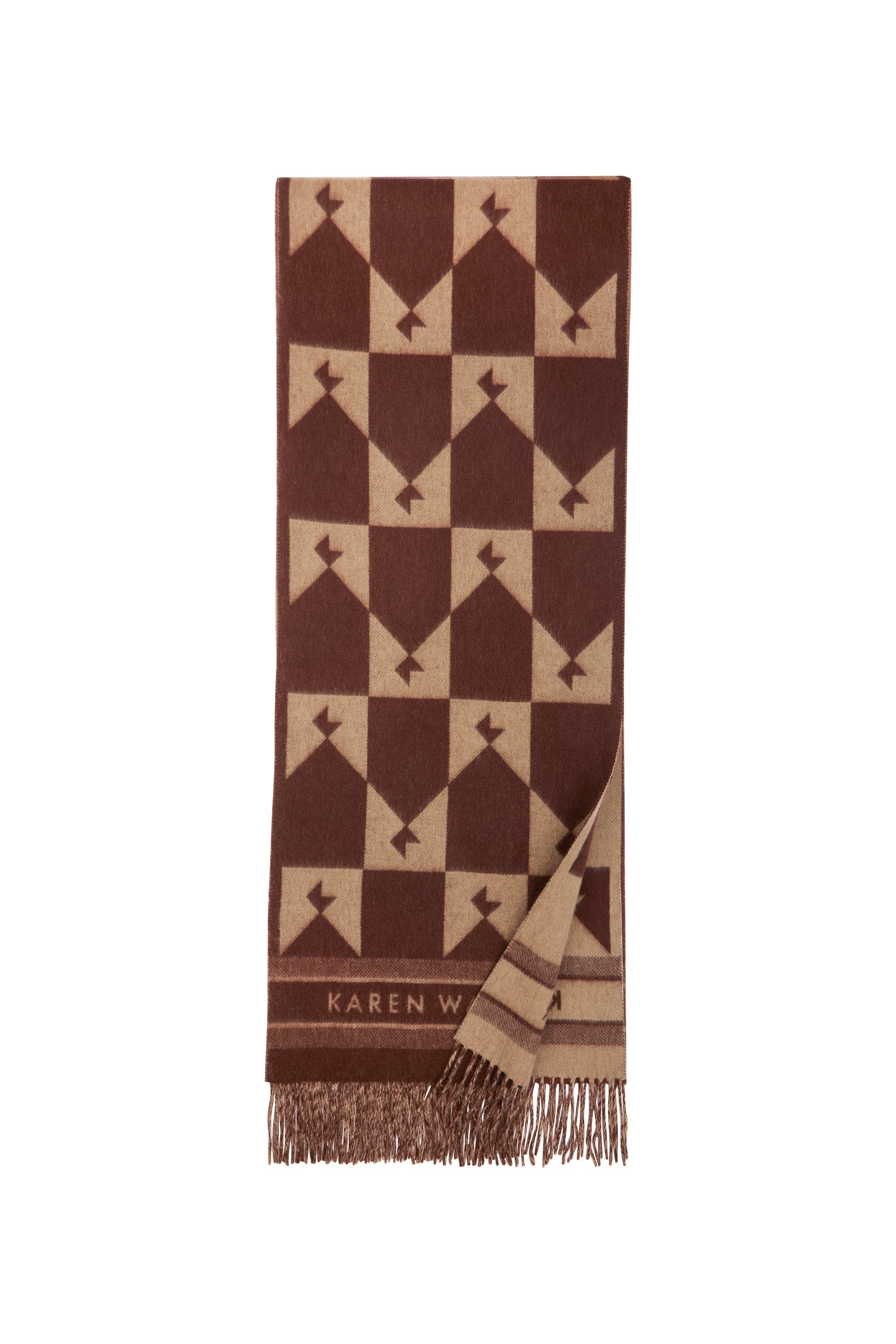 Crafted from a soft merino cashmere blend, this soft jacquard scarf features the signature Karen Walker monogram print in a neutral, warm palette. A gorgeous piece, it adds a gentle touch of texture and beautiful warmth to your winter looks.
