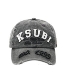 The Duke Crest Dad Cap Crimson in the dad cap fit is made of durable cotton fabric, treated with a soft enzyme wash. The front panels feature an applique logo across the front, with our store location cities embroidered below, on the brim is our founding year featureed a cursive font in high endensity embroidered; our T-Boxes are on the side back panel. Our Ksubi logo is on the internal with branded seam tape finishing the interior.