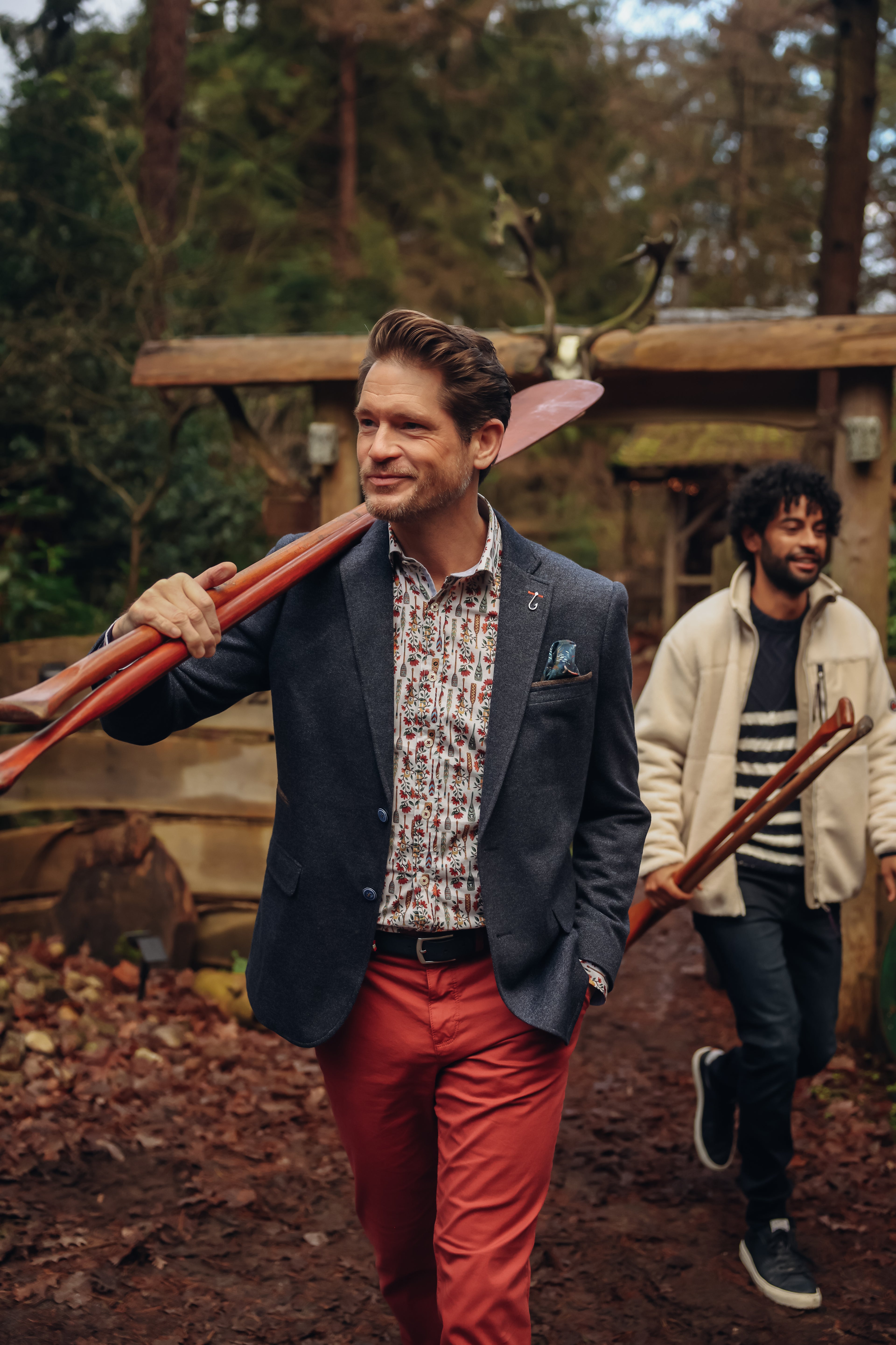 A Fish Named Fred's Herringbone Blazer is made from a blend of 70% polyester, 28% viscose, and 2% elastane. This fabric combination gives it a robust structure and subtle stretch for added comfort. The herringbone pattern is a classic design that lends an element of sophistication and texture to the blazer, making it suitable for both formal occasions and everyday wear. The viscose component adds a slight sheen and softness to the feel of the fabric, enhancing its overall aesthetic and tactile qualities.