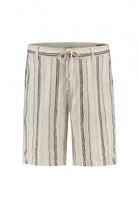 These linen blend drawstring shorts feature a relaxed tailored fit with a natural base and contrasting navy stripes for a refined coastal look.