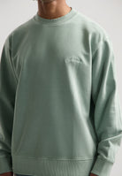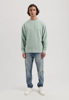 Crewneck sweatshirt in a soft sage green hue, offering a clean, contemporary look with everyday comfort. Crafted from premoum cotton fleece, it features a smooth outer finish and a brushed interior for warmth and softness against the skin.