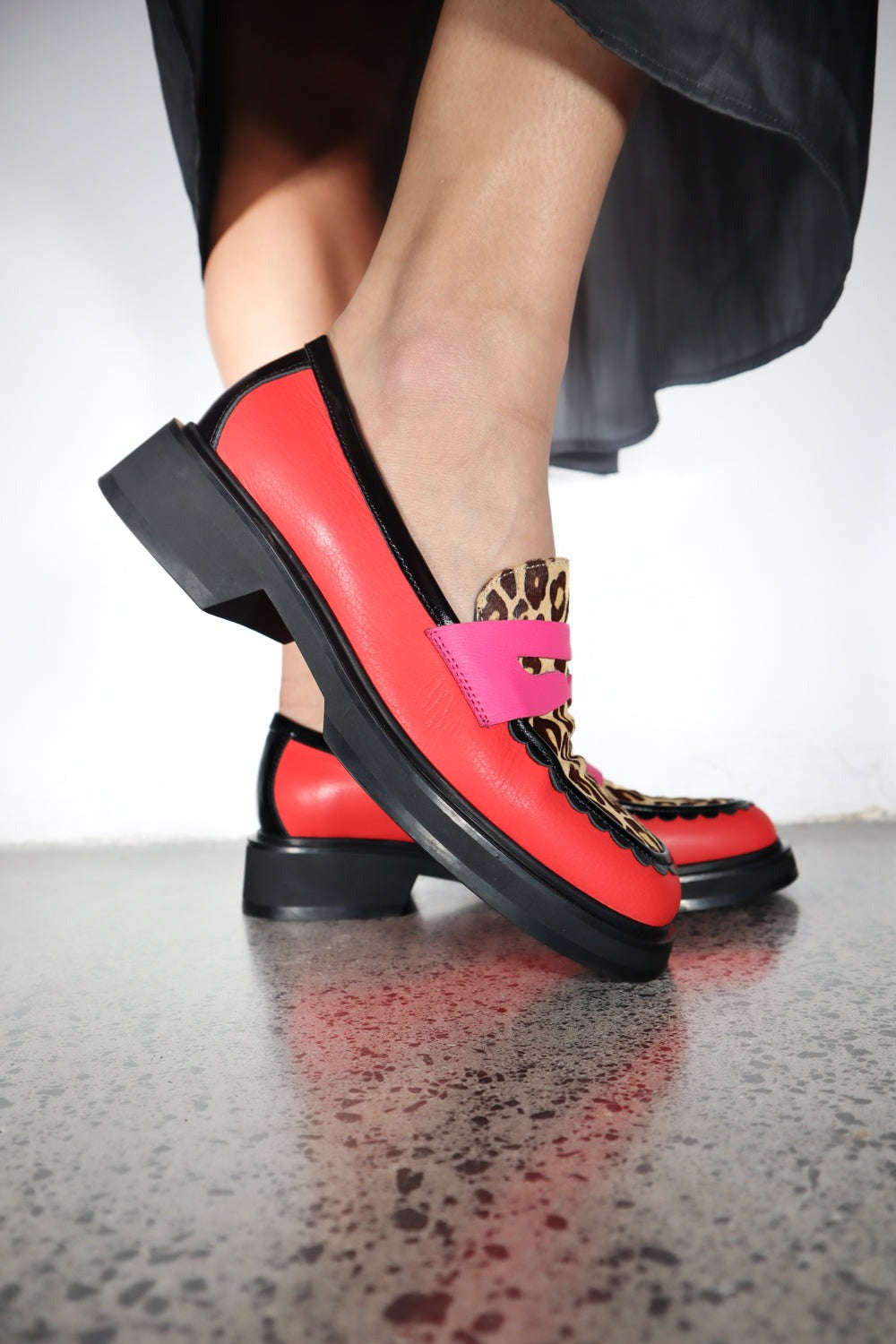 Step into the spotlight with Showtime. Inspired by our beloved Calypso loafer, this refined yet daring design blends all-day comfort with undeniable style. A soft squared-off toe and intricate scalloped detailing add an elegant edge, while the flexible rubber sole ensures the perfect option for all day wear. Available in bold leather color combinations or classic understated colorway's, Showtime is crafted to make an impression with every step because some shoes were simply made for the limelight.