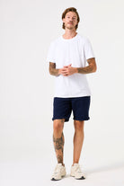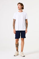 A refined warm weather essential, these deep blue chino shorts combine classic tailoring with casual omfort.