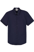 A timeless wardrobe staple, this navy linen shirt delivers effortless sophistication and comfort.