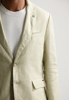 Crafted from a lightweight cotton-linen blend, the blazer provides natural breathability and a soft, slightly textured hand feel - ideal for warm weather dressing. The partial lining ensures ease of movement and a relazed drape.