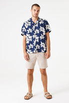 Tropical Bloom Linen Shirt - Deep Ink