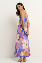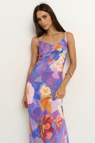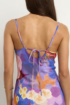 Lavish Tie Back Bias Slip Dress - Violet Floral