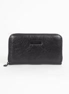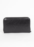 Stay organized in sophisticated style with our Minky Wallet. Crafted from premium black leather with a rich, subtly crinkled texture, this larger wallet is designed for both elegance and practicality. It features a secure zip-around closure with a branded pull, ensuring your cards, cash, and coins are always safe and easily accessible. Perfect for everyday use or as a chic clutch.