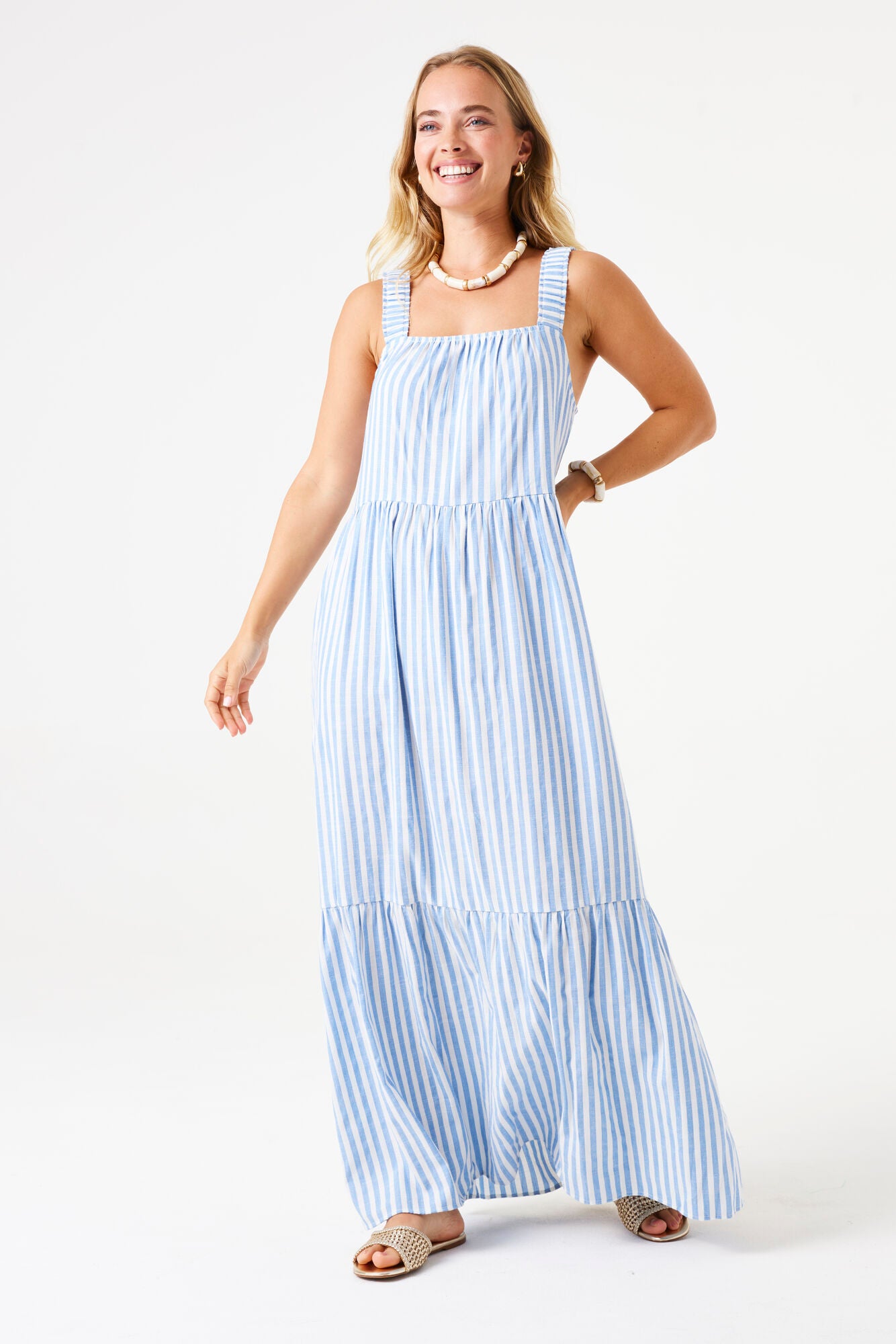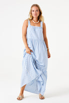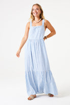 Striped Tiered Maxi Dress - Blue and White Stripe