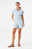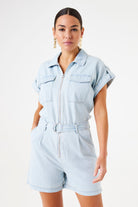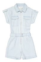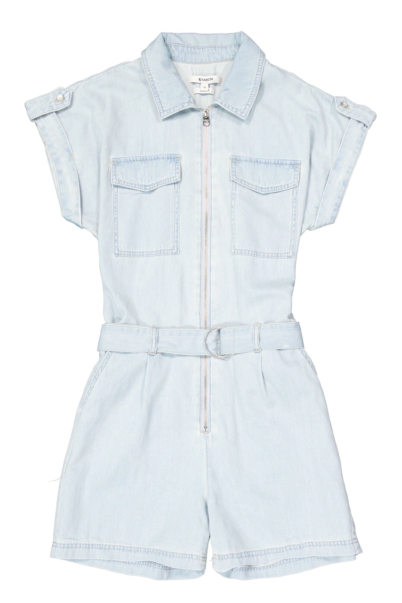 Cool and contemporary, this denim jumpsuit is craftd from soft, light wash denim for an effortless off-duty look.