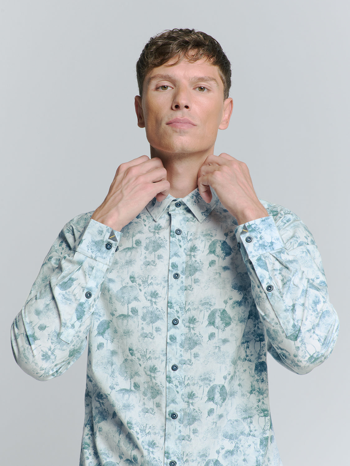 Allover Muted Floral L/S Shirt - Chalk