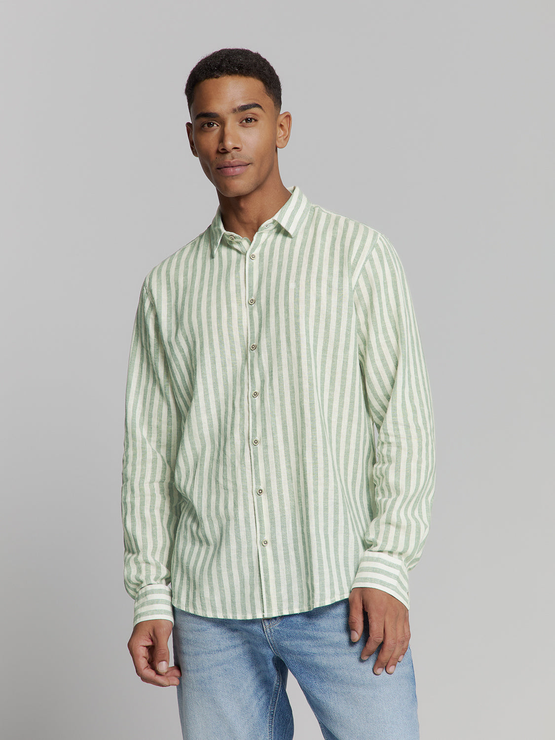 Vertical Big Stripes L/S Shirt - Green