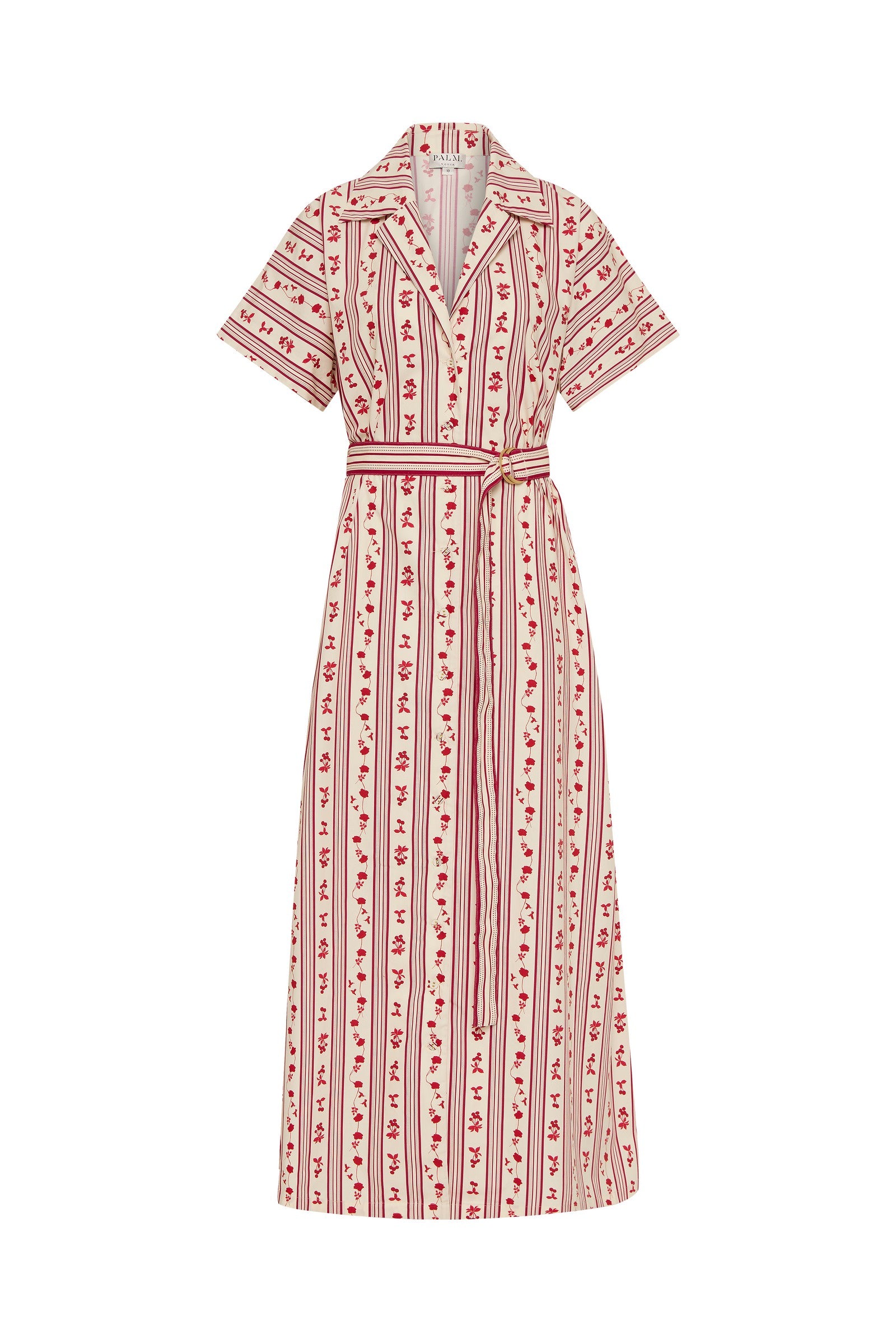 The Sylvie Dress is crafted from a premium Cotton Poplin, printed in our exclusive hand-drawn Raye Fleur print. The Sylvie Dress is designed as a relaxed fit, featuring cuffed sleeves, centre front button detailing, contrast piping and a notched collar. Style with the border print design d-ring belt to create a relaxed yet elevated look.