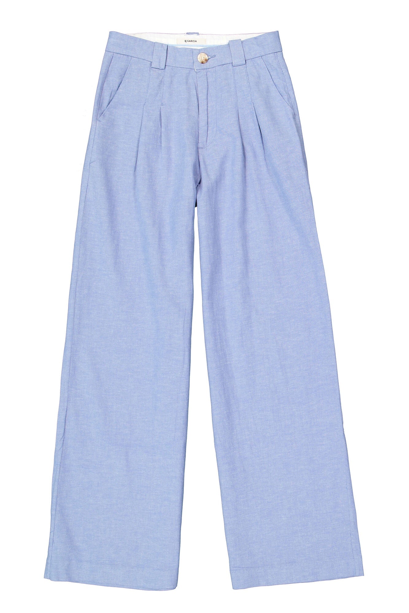Sophisticated yet relaxed, these Garcia high waisted trousers are crafted from a soft, lighteight fabric in a light chambray blue hue.
