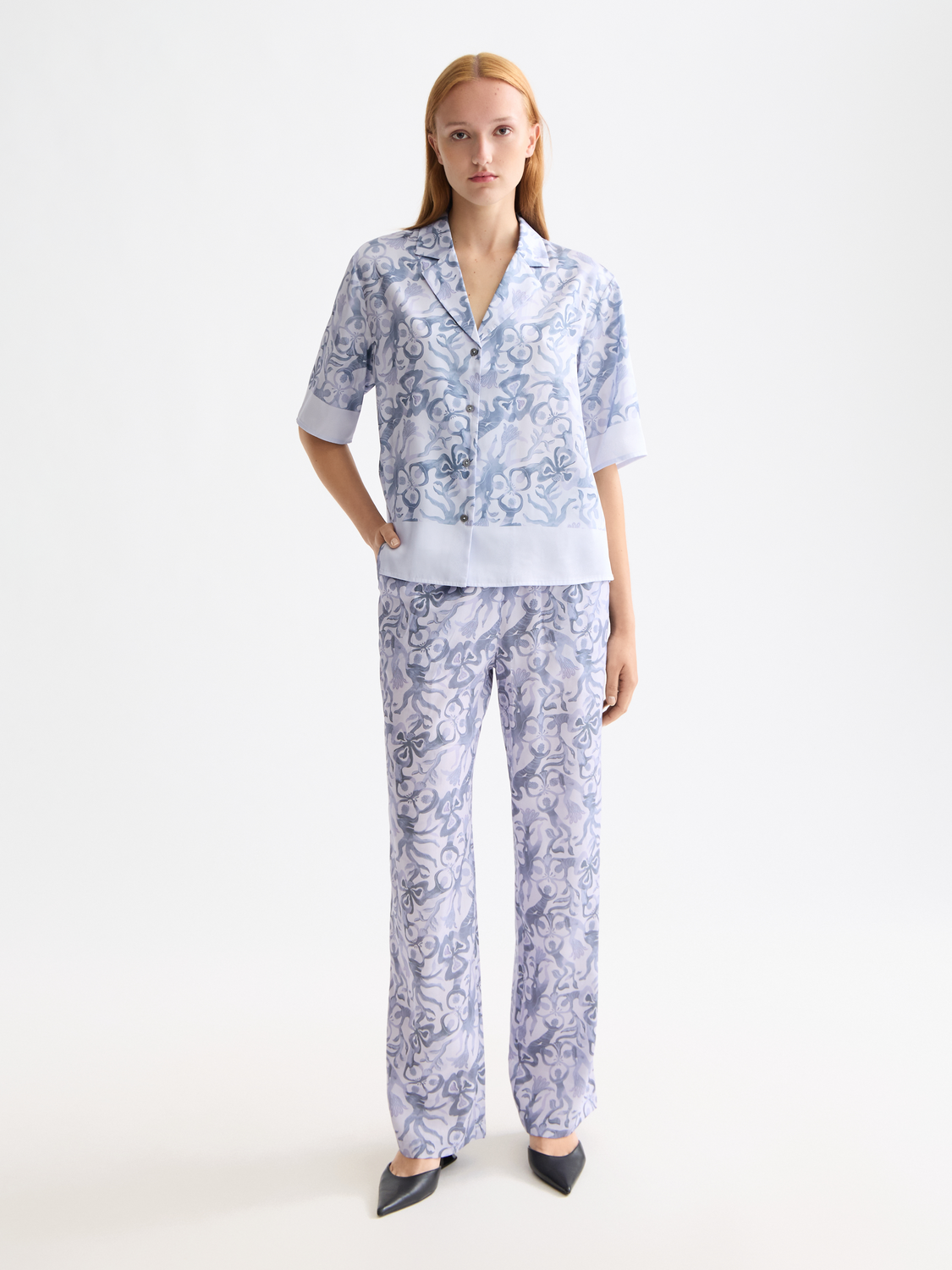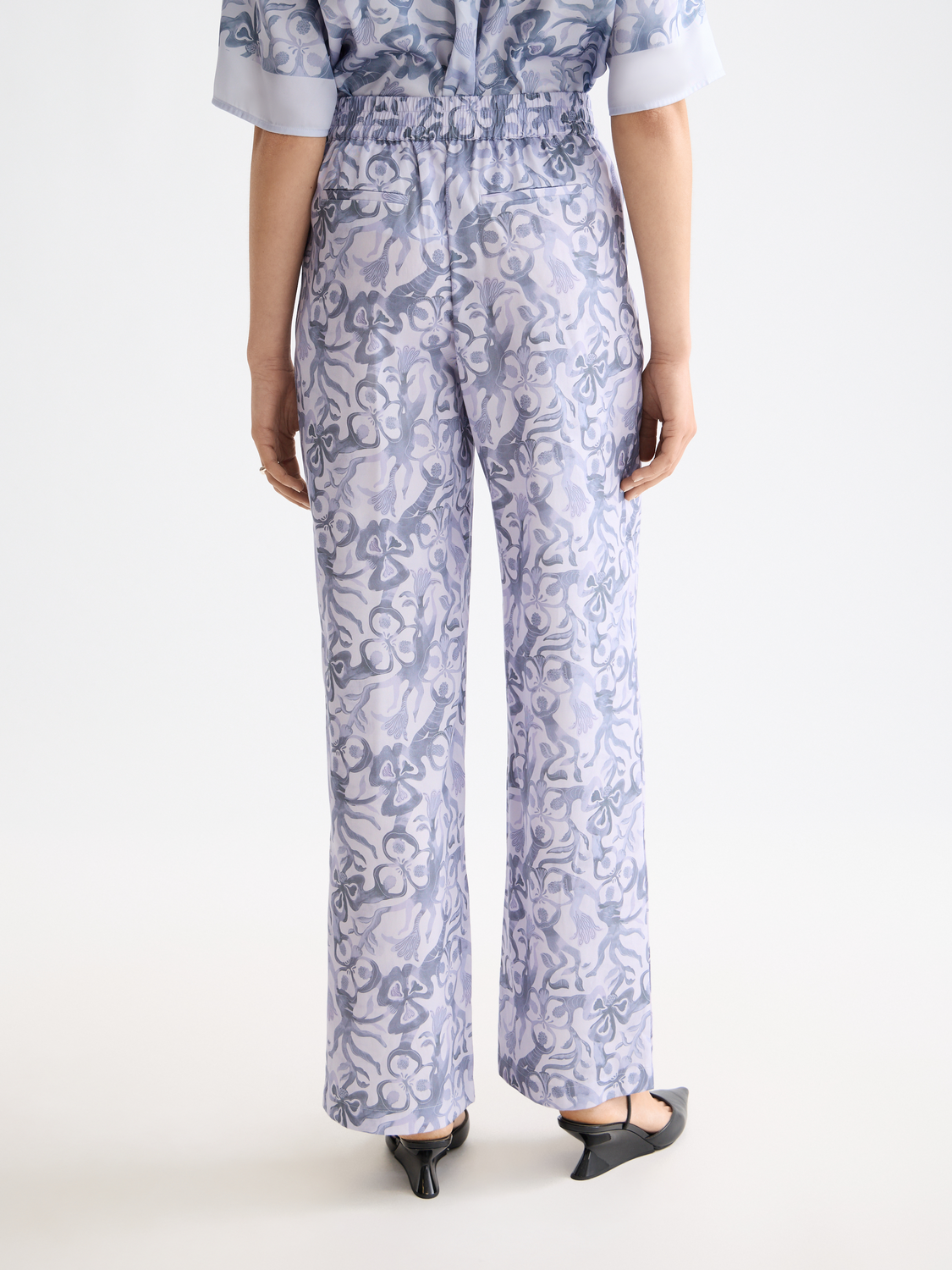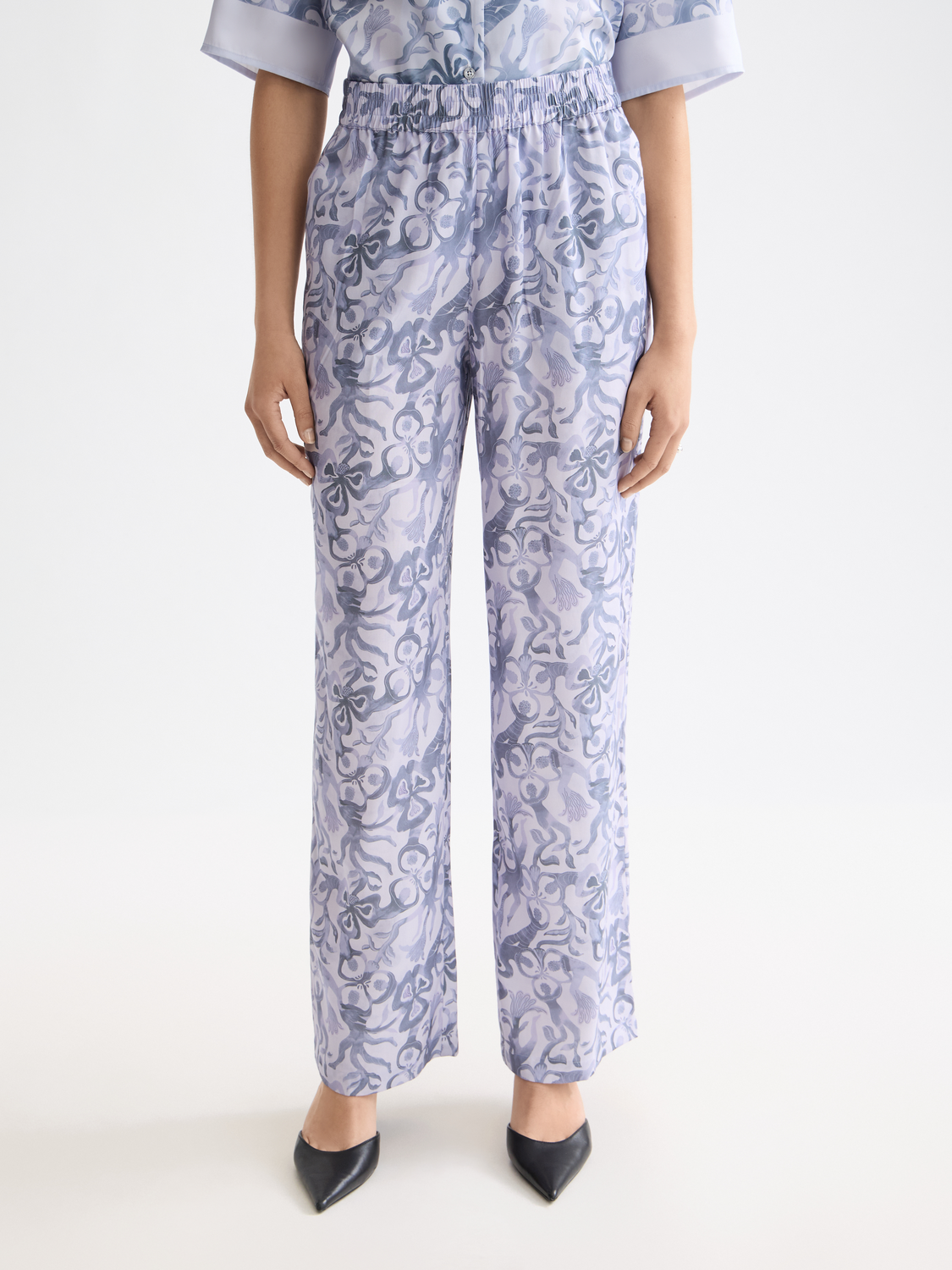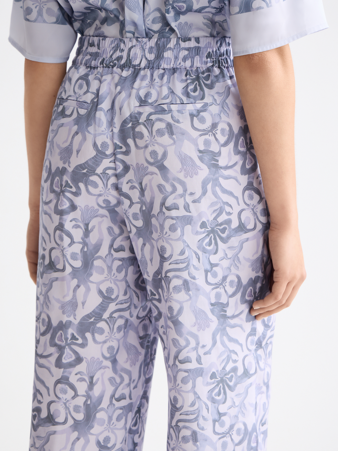 These mid-rise trousers feature a wide leg and elasticated waist for effortless comfort, finished with a bold block print that adds vibrant style.