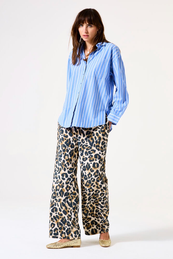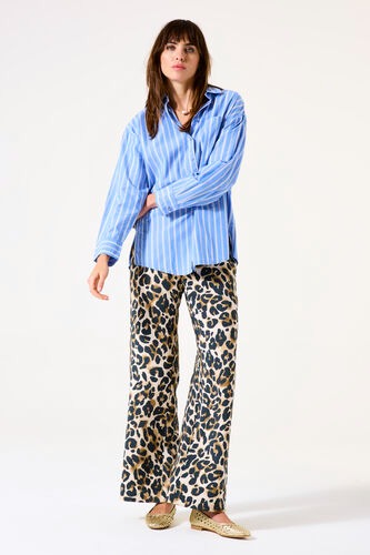 Leopard print flared pants.