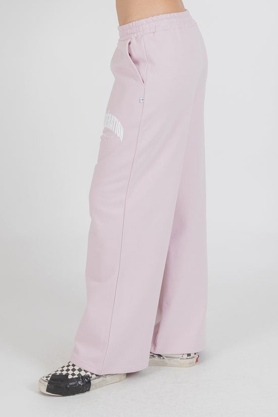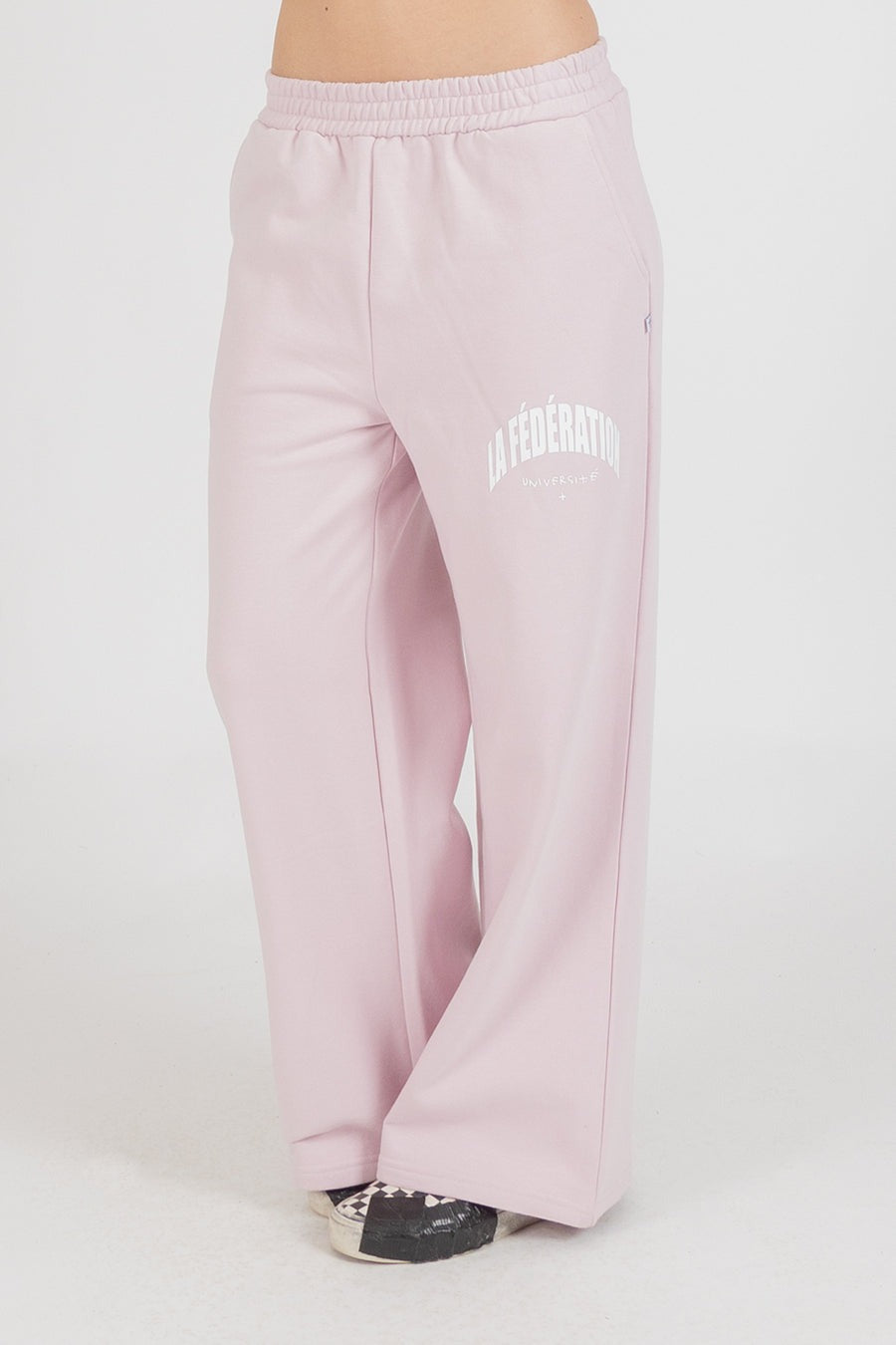 Lounge in chic comfort with our Tokyo Trackie - La Fed. Crafted from soft 100% cotton in a charming soft pink, these wide-leg track pants feature an elasticated waist for a relaxed fit. The "LA FÉDÉRATION" logo is subtly printed on the upper left leg, adding a touch of signature style to this relaxed yet fashion-forward piece.