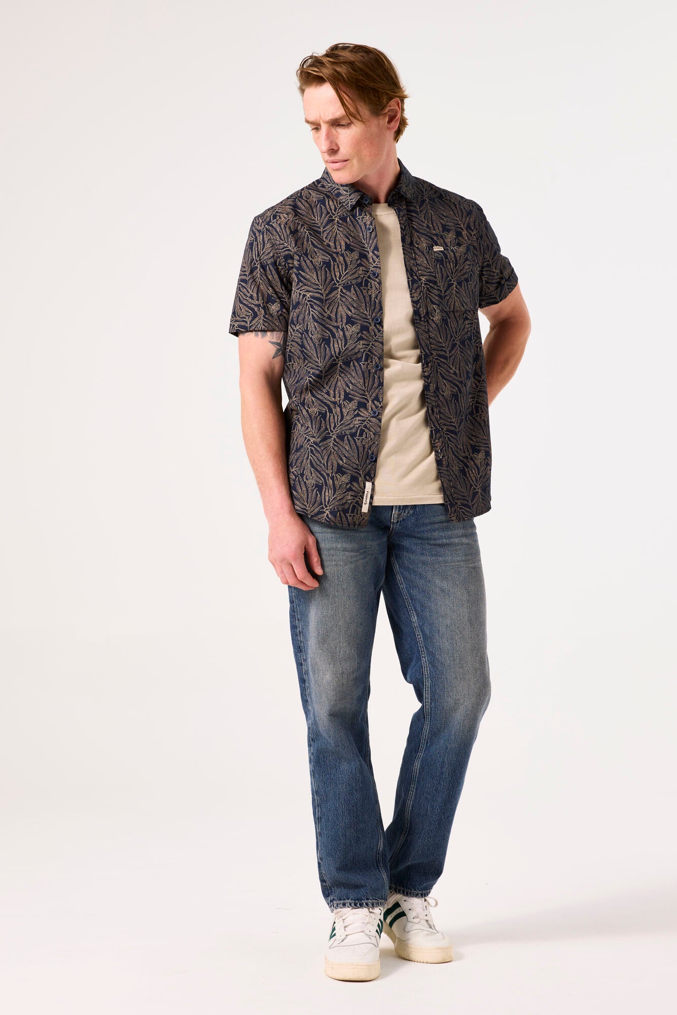Botanical Leaf Print S/S Shirt - Deep Ink