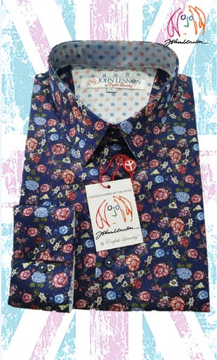 John Lennon L/S Shirt - White w/Blue Palm Print