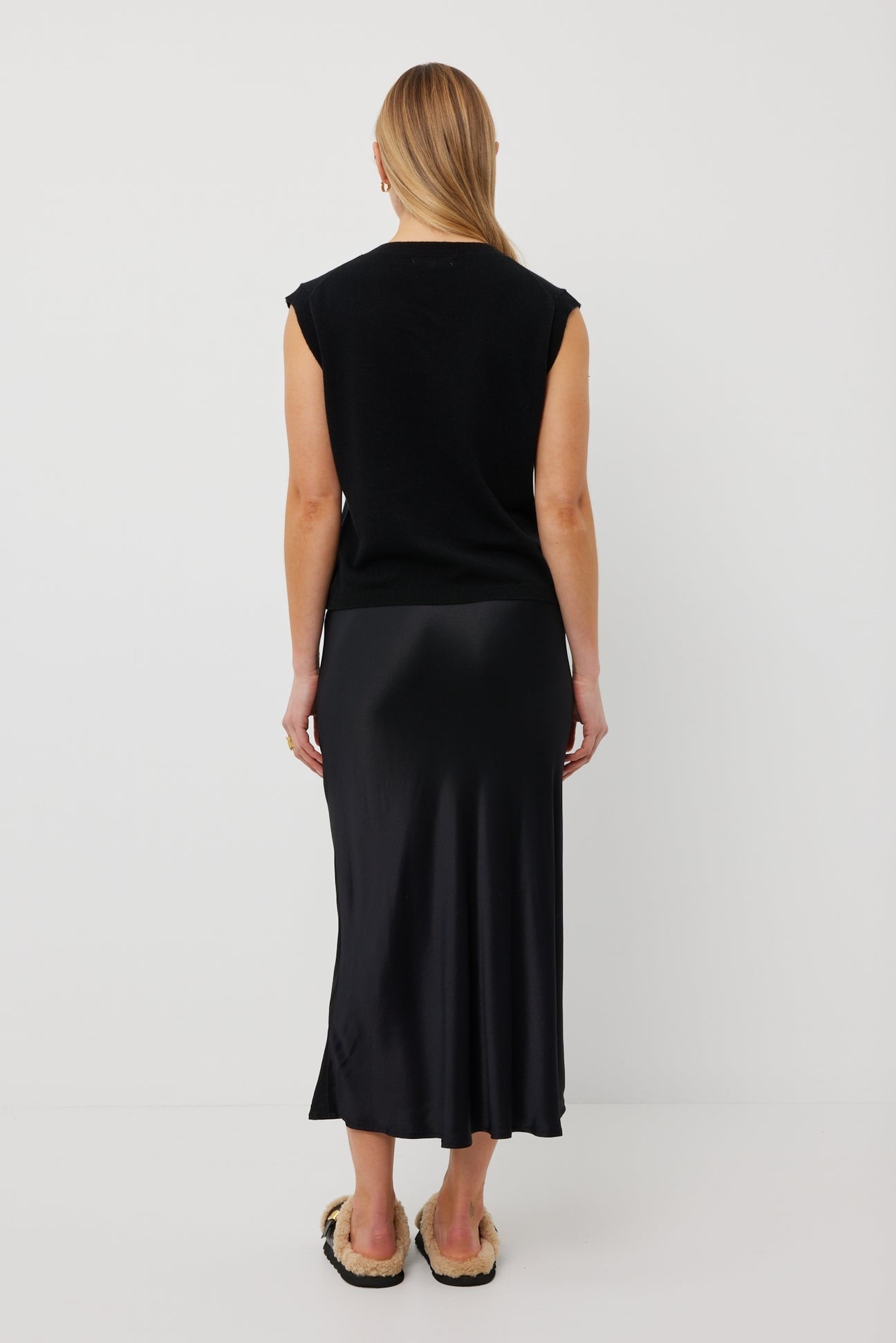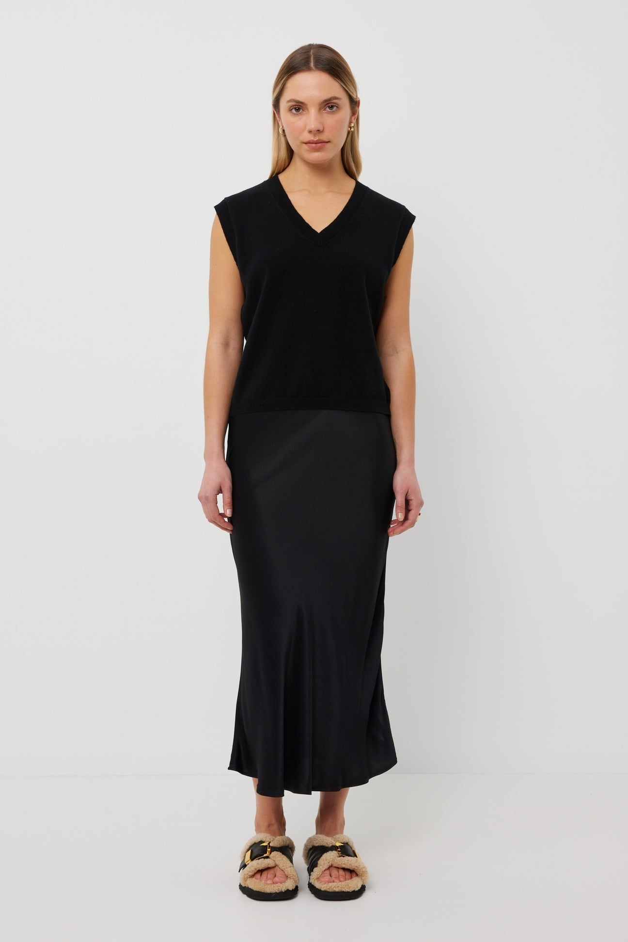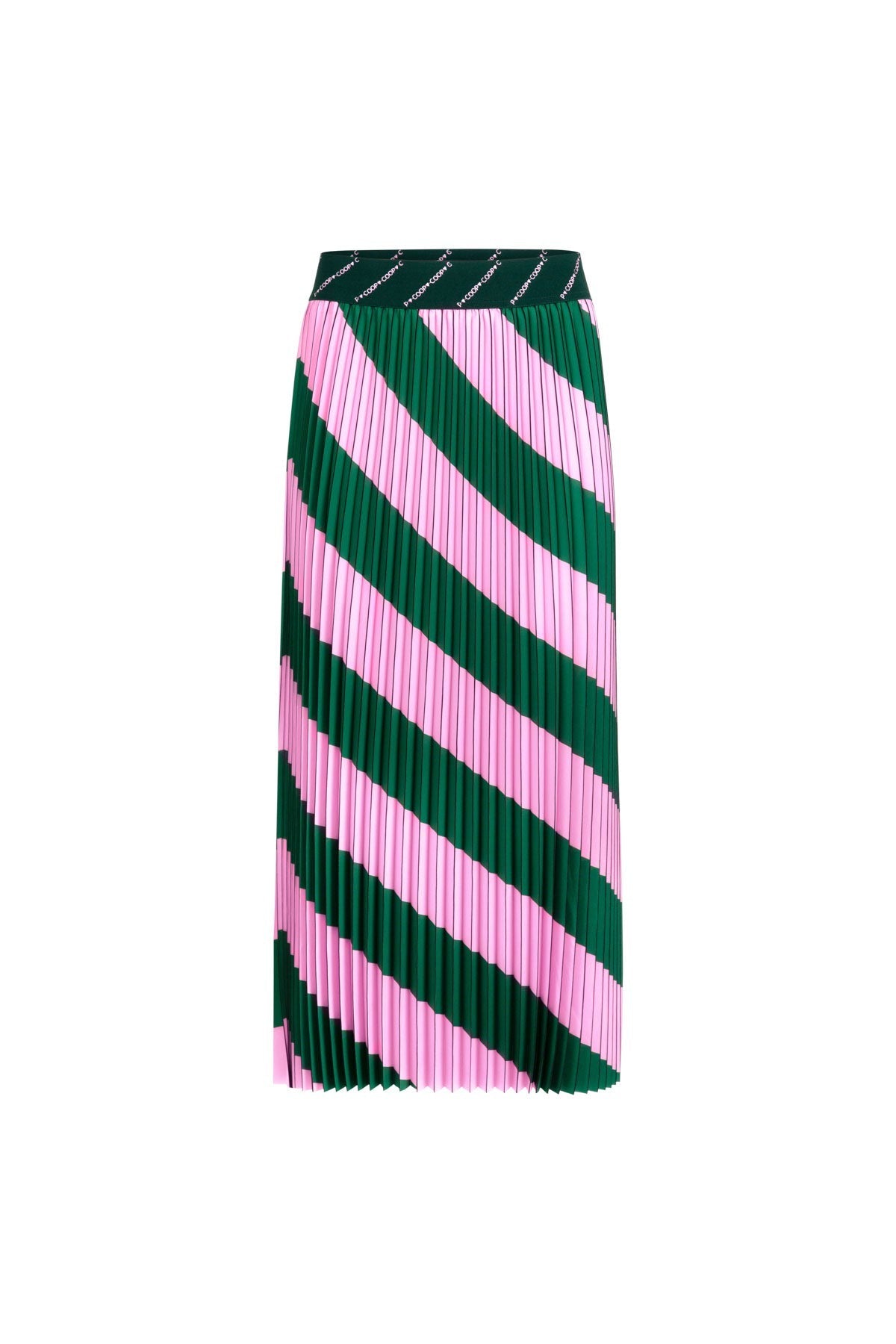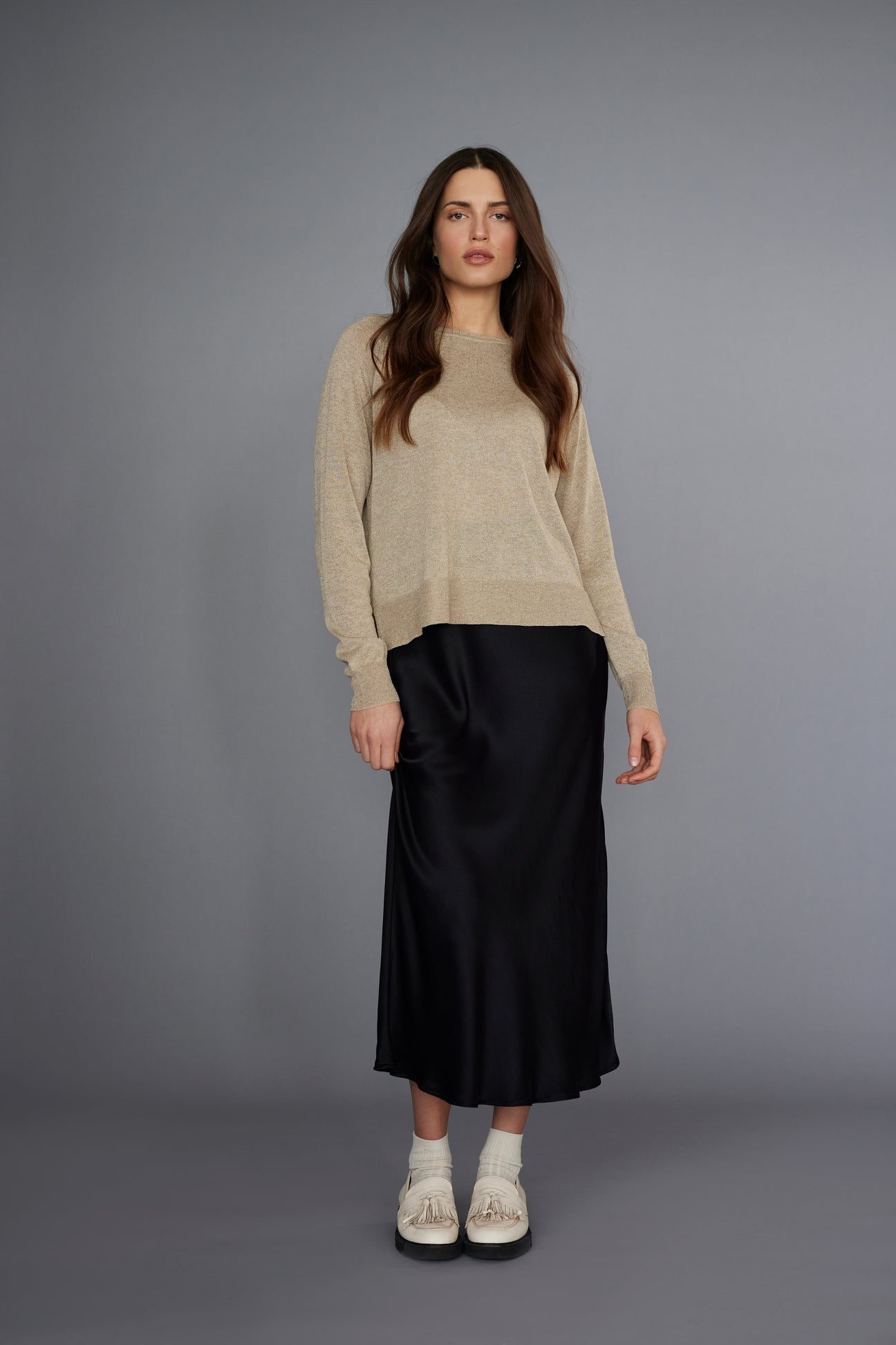 Stunning Stripe Satin Bias Midi Skirt - Khaki Black Stripe