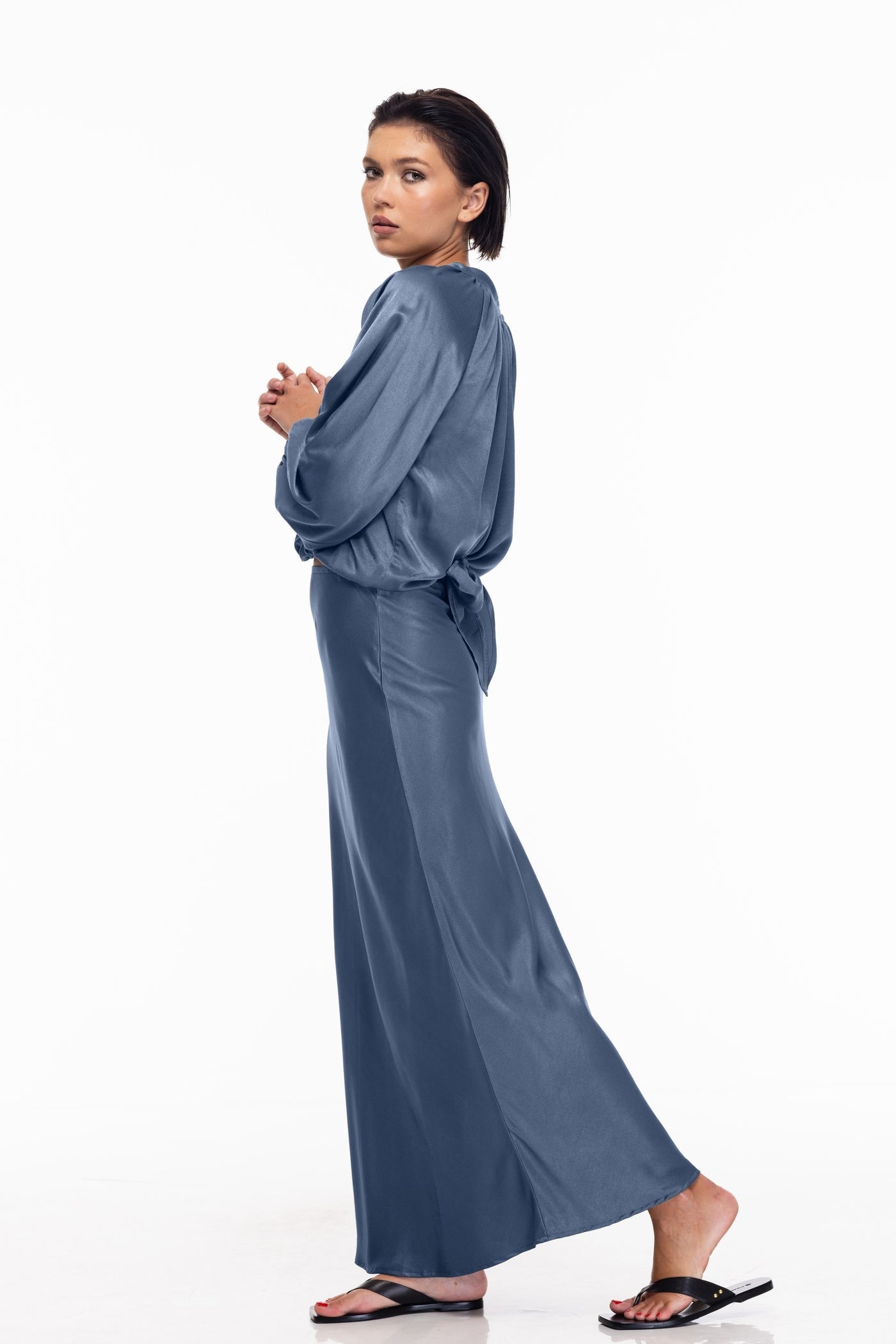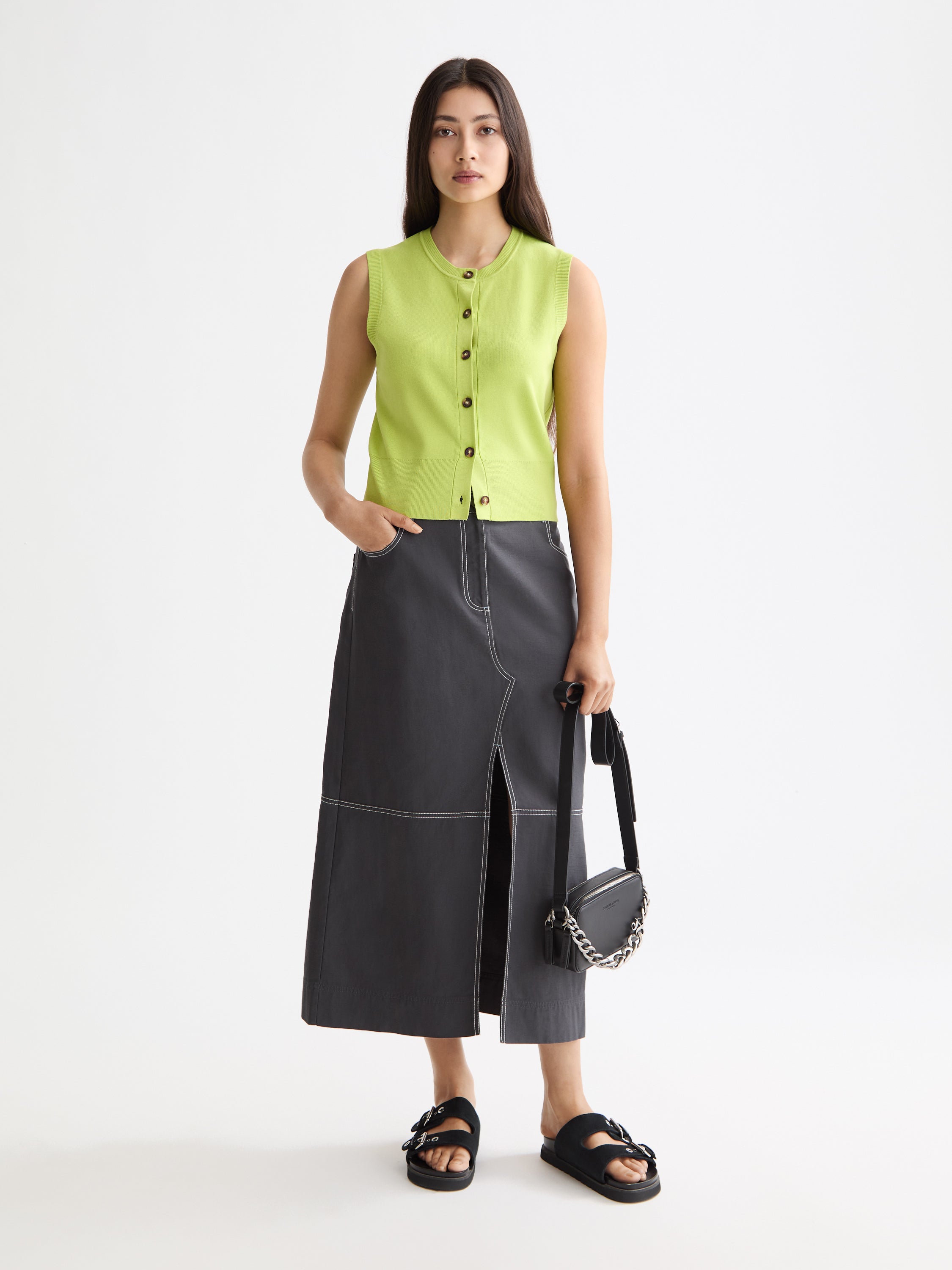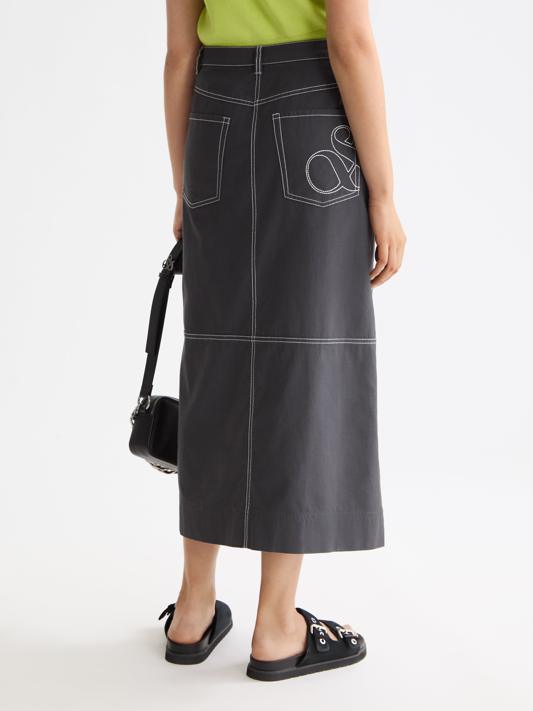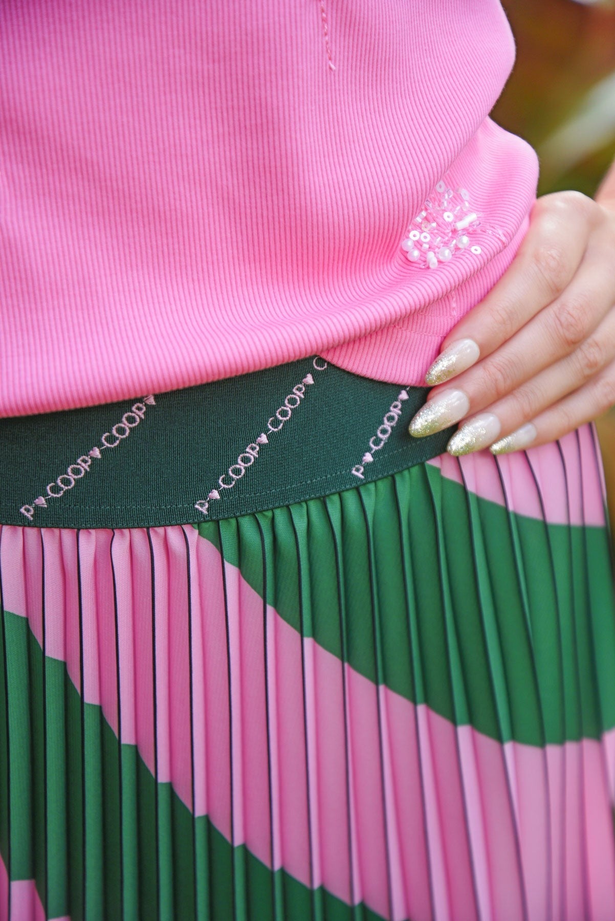 Stunning Stripe Satin Bias Midi Skirt - Khaki Black Stripe