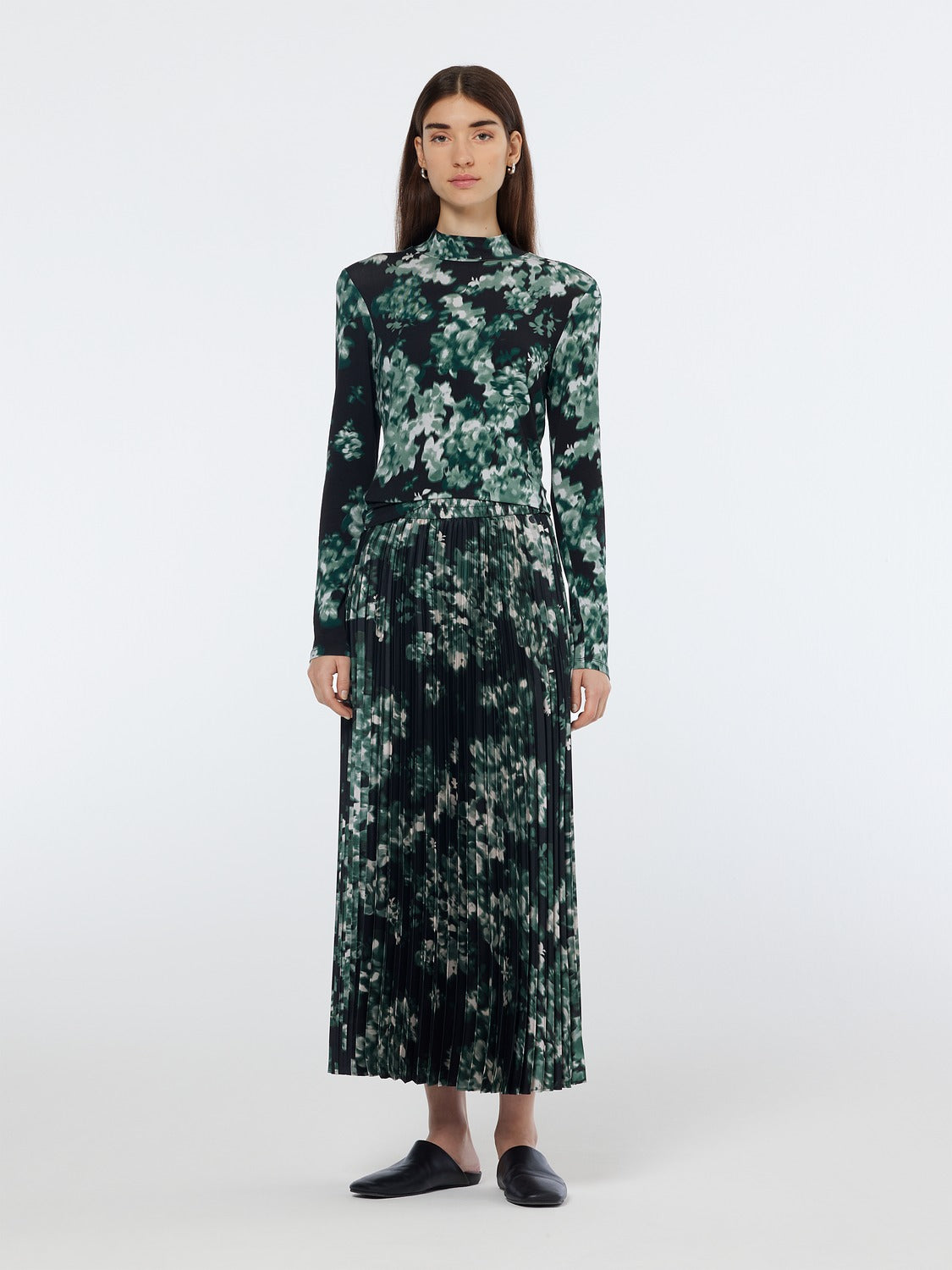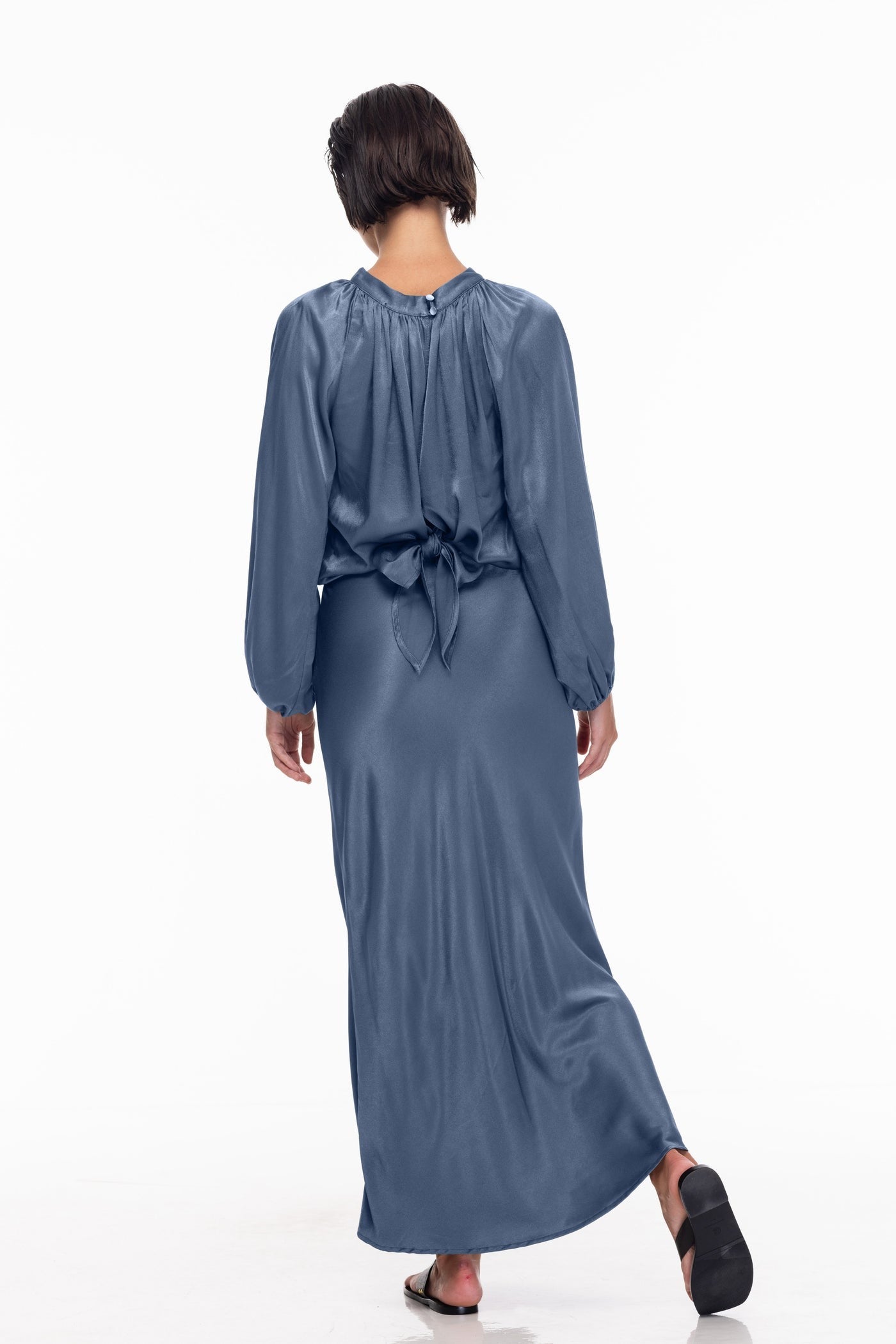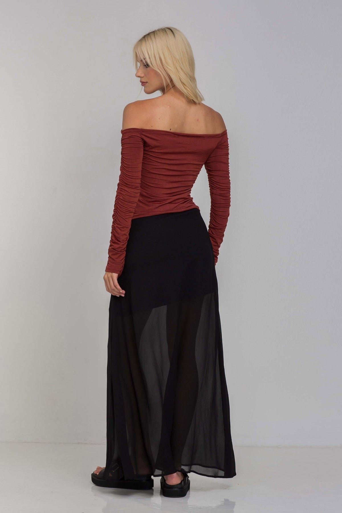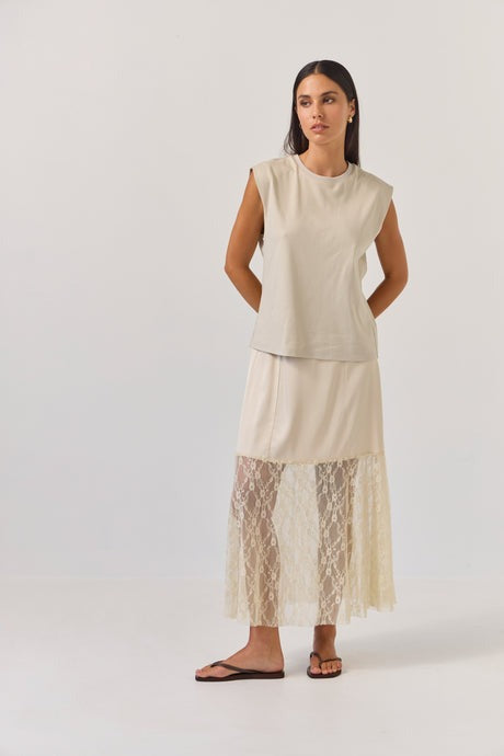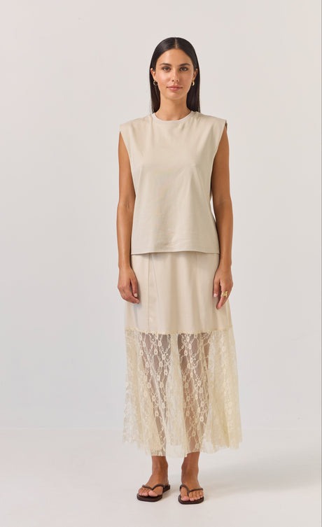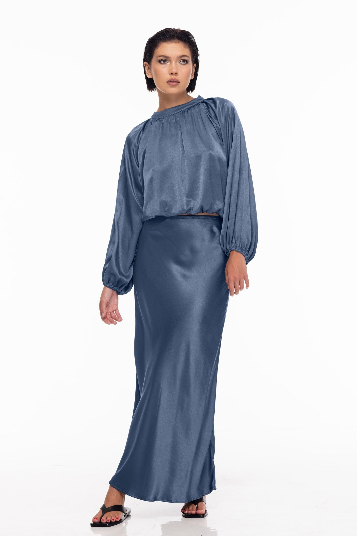 Stunning Stripe Satin Bias Midi Skirt - Khaki Black Stripe